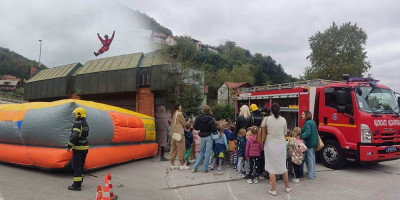 Vatrogasci-spasioci su na oduševljenje mališana izveli niz vežbi spašavanja i gašenja požara.