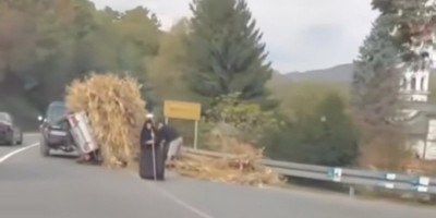 Prizor koji su svi komentarisali i zabeležili kamerama, jesu upravo monahinje koje su pritekle u pomoć, pokupile seno, kako bi saobraćaj mogao da se odvija neometano.
