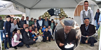 Dok su mlađi dočekivali goste, stogodišnji Petar je sedeo pod šatrom i uživao u atmosferi.