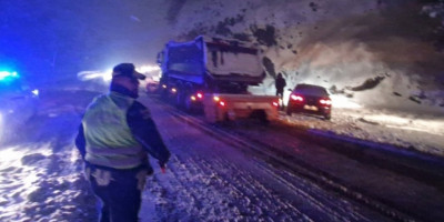 - Ogromna kolone je ispod Čajetine, zastoj traje već dugo, čuli smo da je u blizini tunela zaglavljeno nekoliko šlepera, nadamo se da će uskoro put biti prohodan. Sneg pada bez prekida - rekla nam je jedna prolaznica magistralnim putem za Novu Varoš.