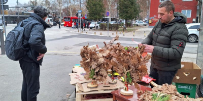 Najjeftinije su hrastove grančice bez postolja i ikakvih ukrasa - svega 50 dinara, a mlado žito u plastičnim čašama je 100 dinara.