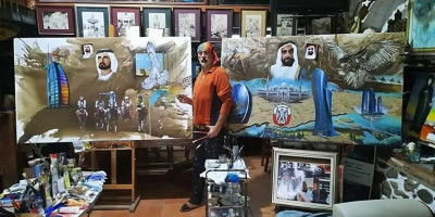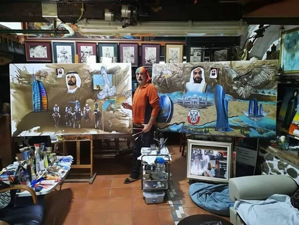 - Sve vladare i kraljeve svih sedam Emirata ja sam oslikao, četiri portreta dimenzija 2x120 bivšeg kralja, ali i sadašnjeg Muhameda koji je jako dobar sa našim predsednikom - priča nam Slobodan i nastavlja: