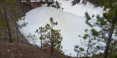 Debeo sloj leda celom dužinom jezera, dnevne temperature u plusu, ipak nisu mogle da otope, pa je ovaj skriveni biser prirode potpuno okovan.