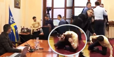 Odbornici opozicije su insistirali da se sednica ipak nastavi i dok je radnik koji je radio na ozvučenju, Savo Škodrić, isključivao ozvučenje i počeo da pakuje laptop nekoliko opozicionih odbornika krenulo je ka njemu.