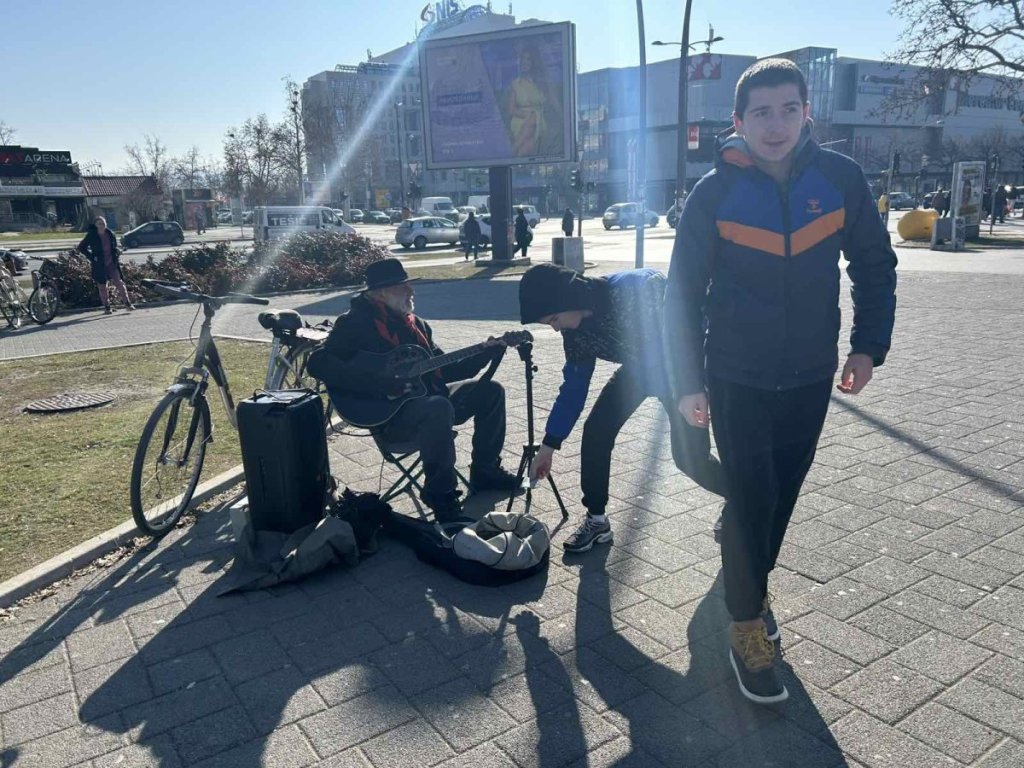 Ima i onih koji zastanu i nagrade ga po kojom novčanicom ili sitnišem za svirku.