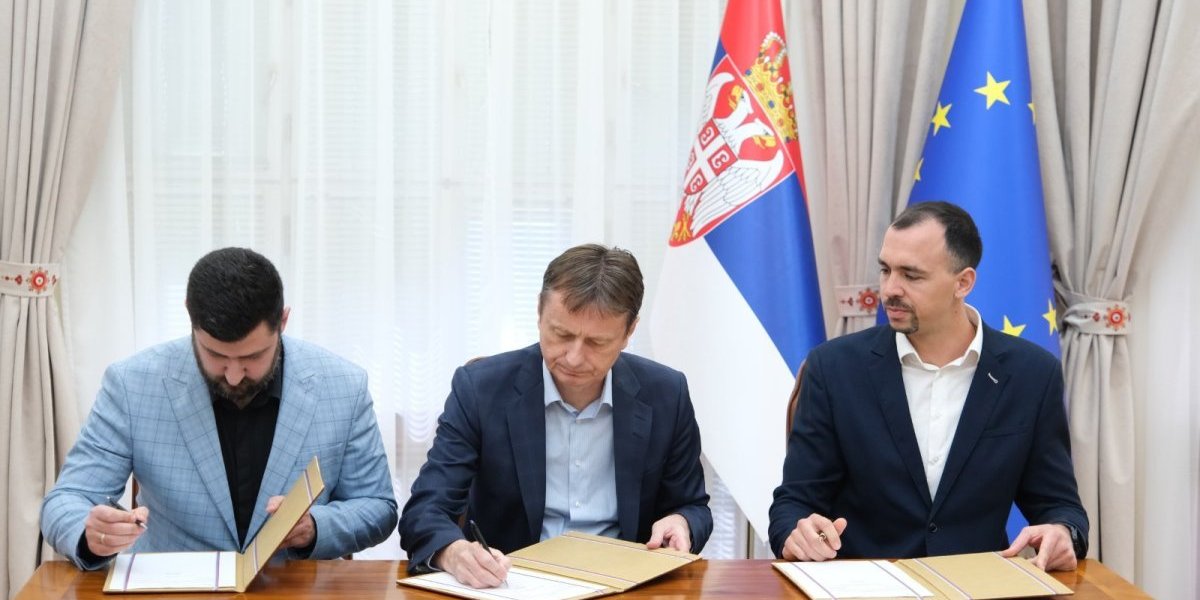Ugovor o izvođenju radova na rekonstrukciji i sanaciji izdvojenog odeljenja Osnovne škole "Borivoje Ž. Milojević" potpisali su ministar za javna ulaganja Darko Glišić, predsednik opštine Krupanj Mladen Stefanović i predstavnik izvođača radova Marko Radonjić.
