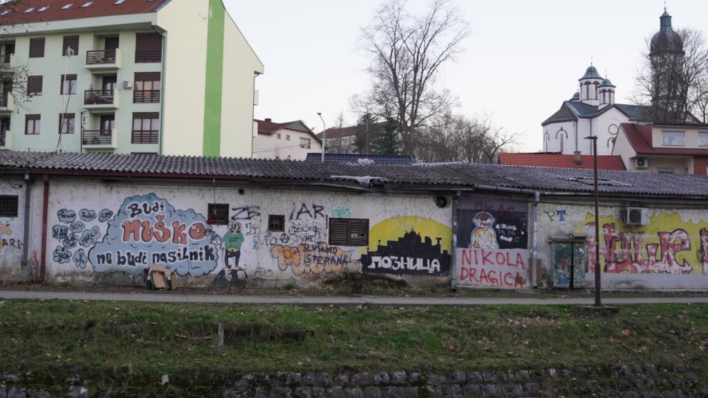 U šetnji gradom, naići ćete na upečatljive murale Nikole Tesle, Alekse Šantića i pevača Sinana Sakića, ali i na navijačke parole, romantične stihove i, nažalost, fasade koje su išarane bez smisla i mere.