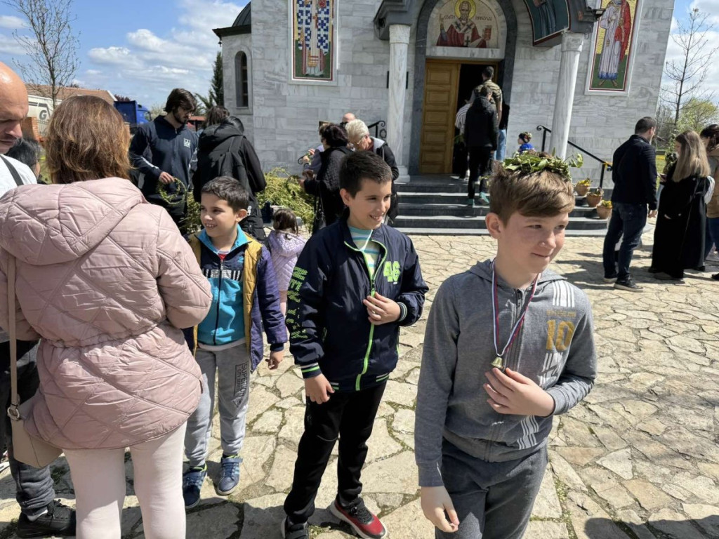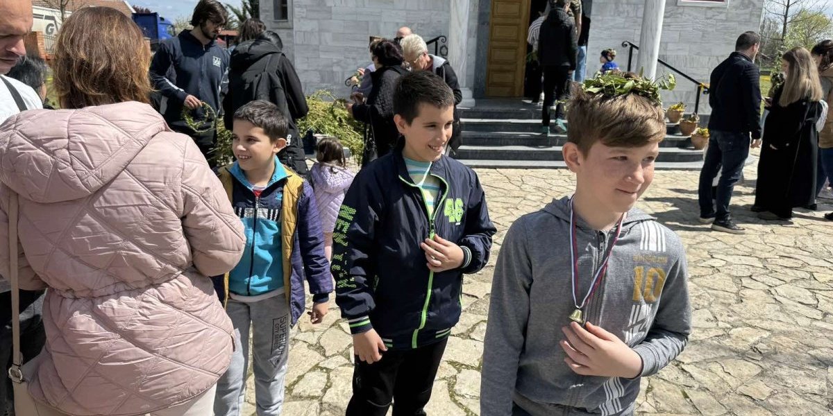 Vrbove grančice, uz dečije osmehe, šarene balone, graju, radost, veselje i poklone, ukrasile su i portu Hrama Svetog oca Nikolaja, u zrenjaninskom naselju Zeleno polje.