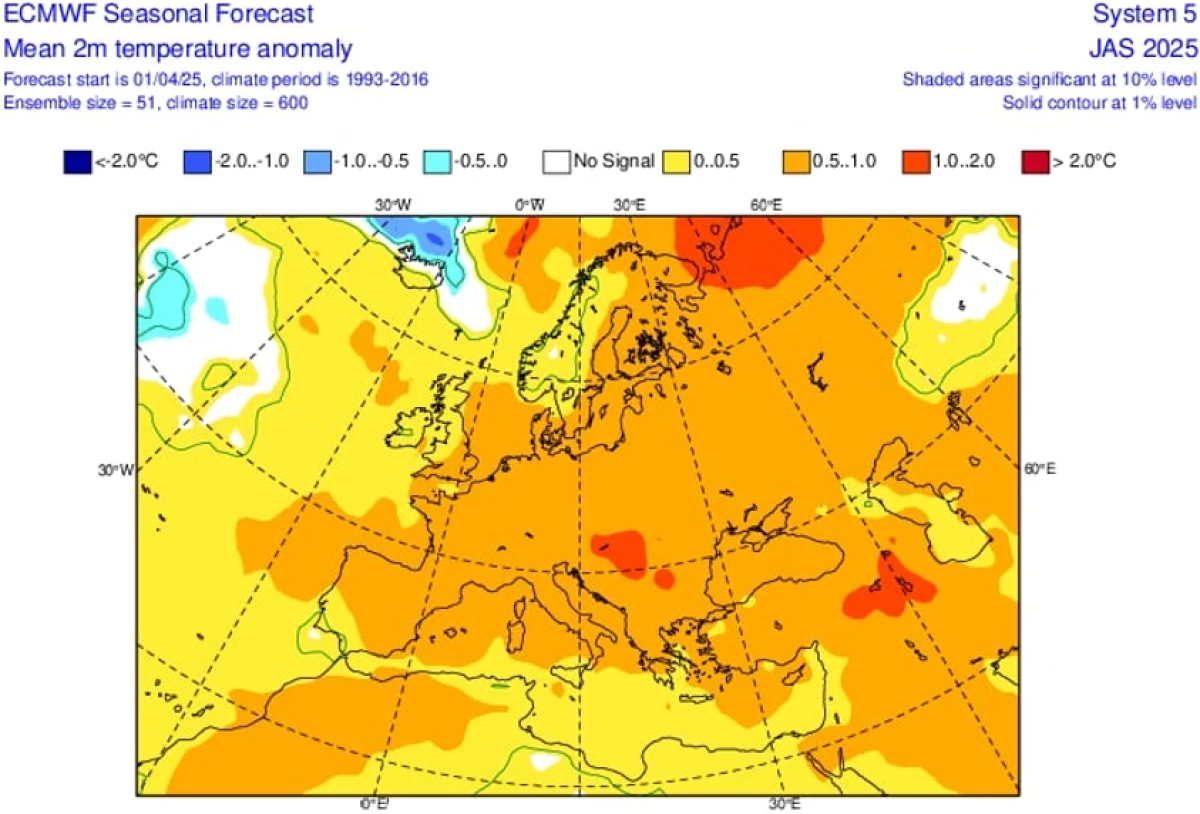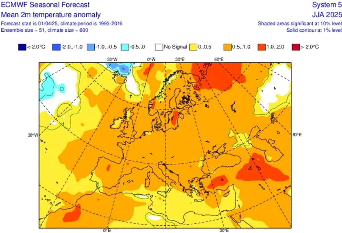 Leto će 2025. godine biće za nijansu svežije nego ono 2024. ali uprkos tome, biće jako toplo u delu Panonske nizije, što je prikazano i na mapama!