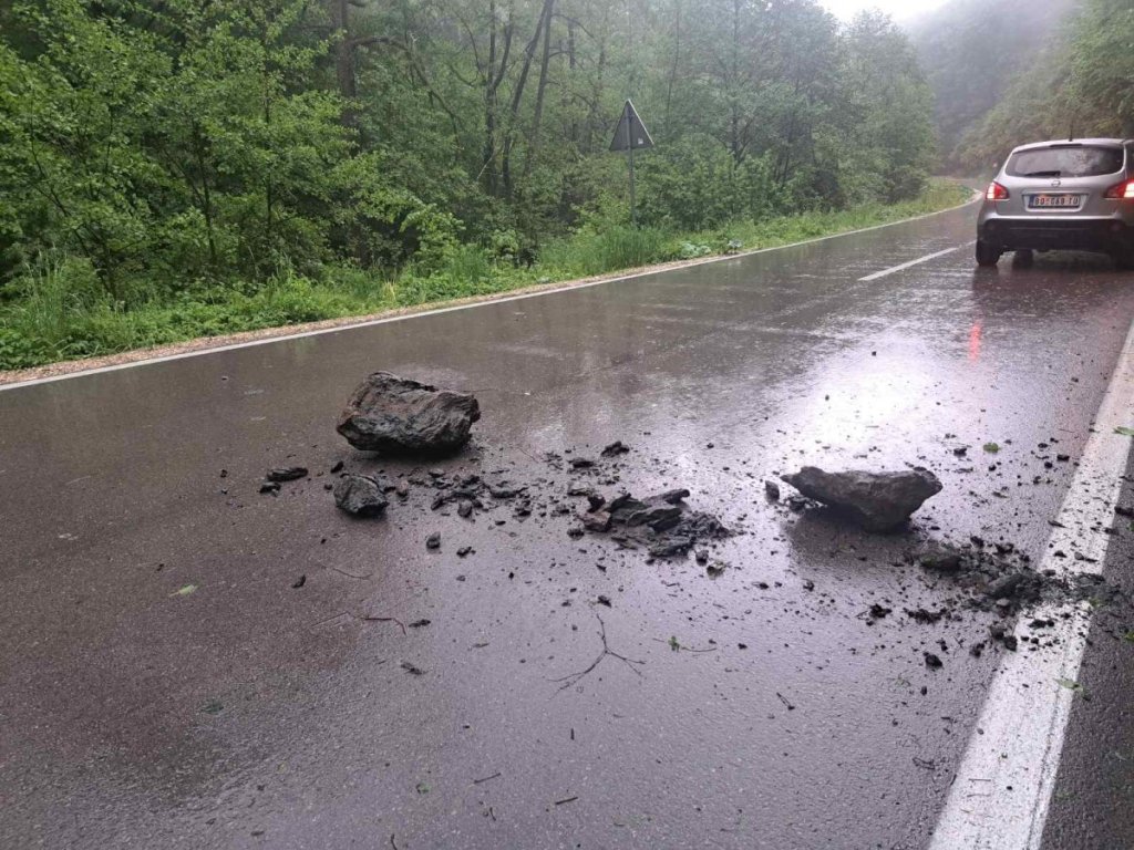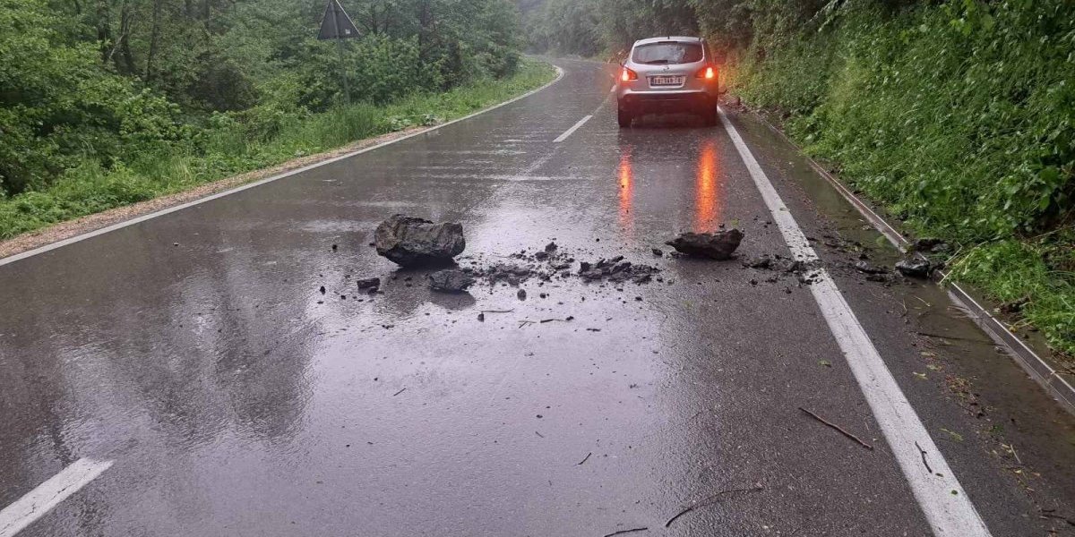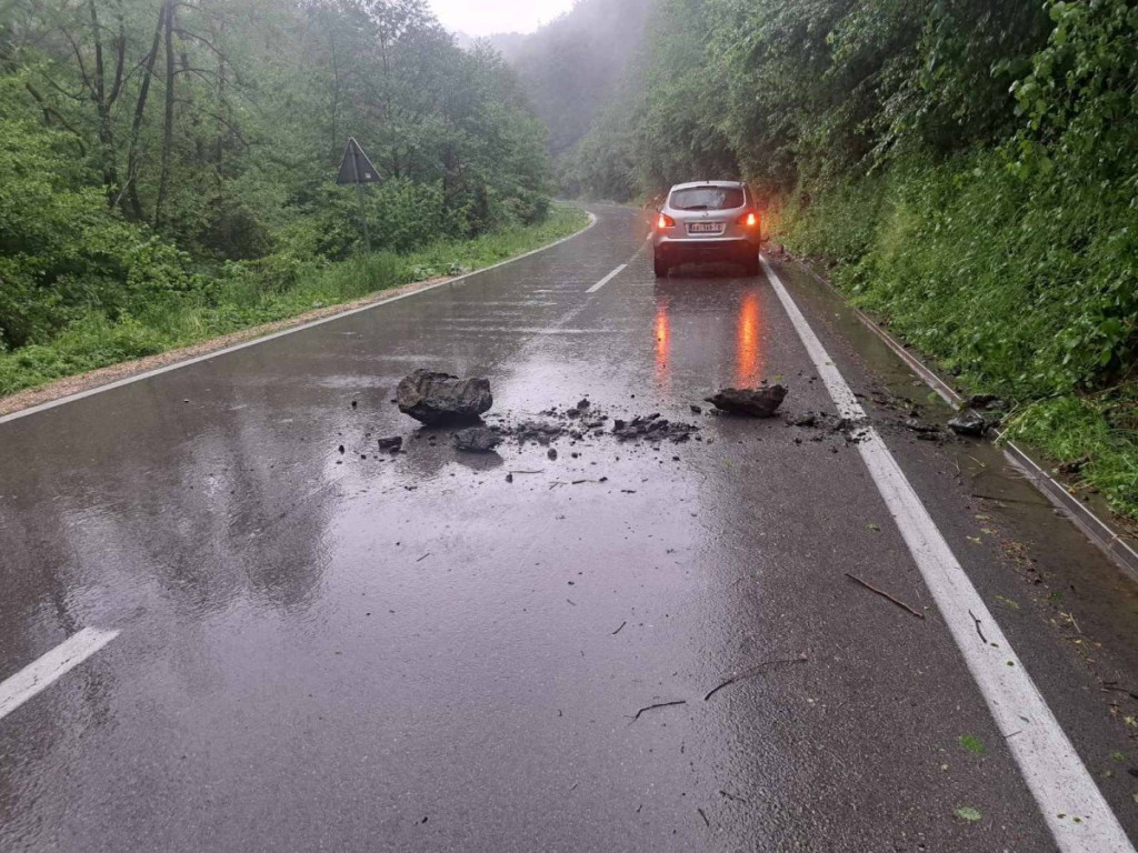 Od jake kiše odvalili su se delovi stena sa litica na kolovozu u blizini mesta Blagojev kamen. Ogromno kamenje nalazi se na nekoliko mesta, preko celog puta i mogu izazvati ozbiljne posledice po vozače ukoliko se ne uoče na vreme.