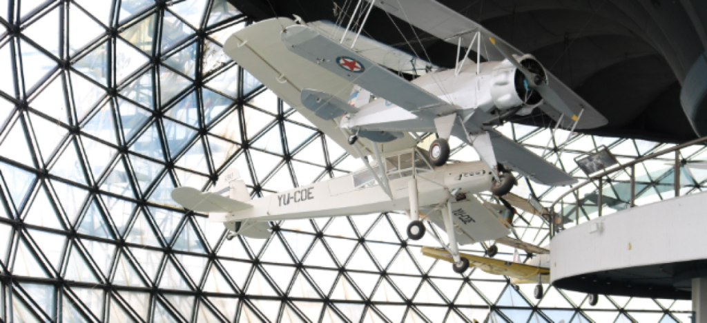 Vazduhoplovni muzej osnovan je 1957. godine, a prva stalna izložba otvorena je 1989. godine. Zgrada muzeja, koja podseća na futuristički objekat, prostire se na više od 10.000 kvadratnih metara i domaćin je preko 200 eksponata, uključujući avione, helikoptere, avio-motore, radare i druge artefakte koji svedoče o razvoju vazduhoplovne industrije u Srbiji i svetu.