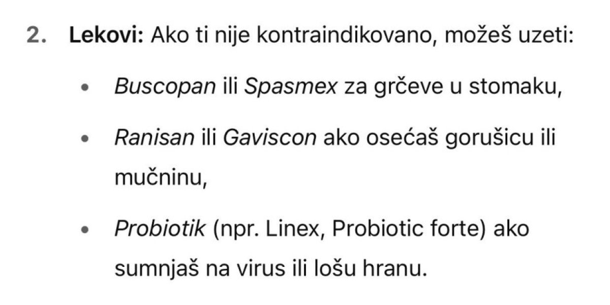 Osim toga, kada je reč o lekovima, odgovoti veštačke inteligencije nisu u potpunosti precizni, a ponekad ni tačni, pogotovo jer je terapija individualna za svakog čoveka.