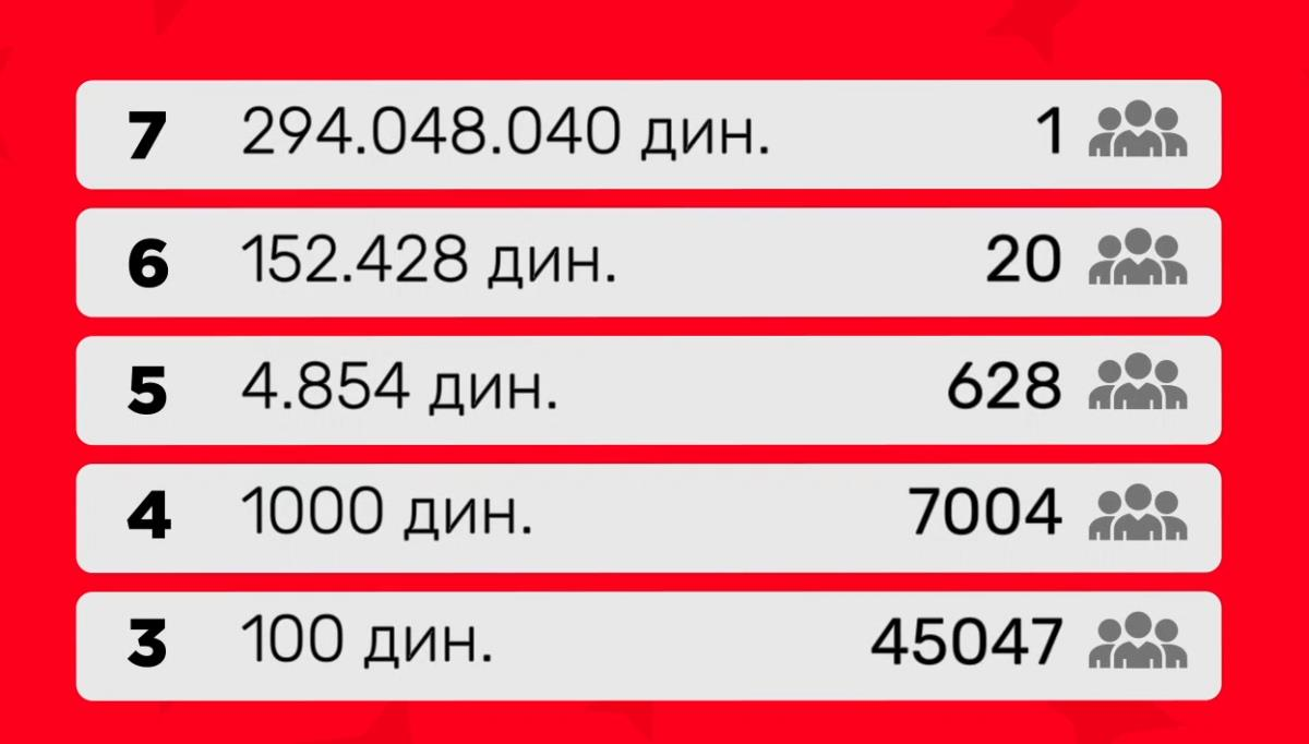 Pored Loto sedmice izvučeno je čak 20 "šestica", a njihovi dobitnici bogatiji su za 152.428 dinara.