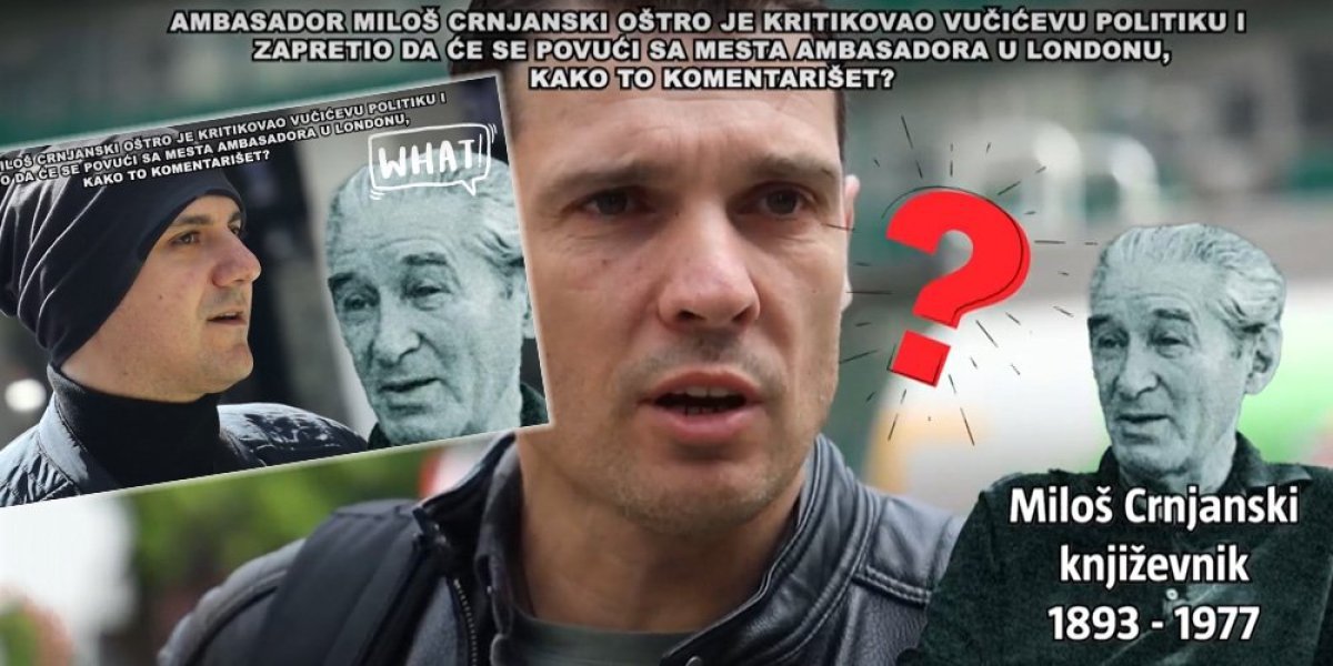 Na postavljeno pitanje koje glasi: "Ambasador Miloš Crnjanski oštro je kritikovao Vučićevu politiku i zapretio da će se povući sa mesta ambasadora u Londonu, kako to komentarišete?" - slučajni prolaznici šokirali su Srbiju svojim odgovorima.