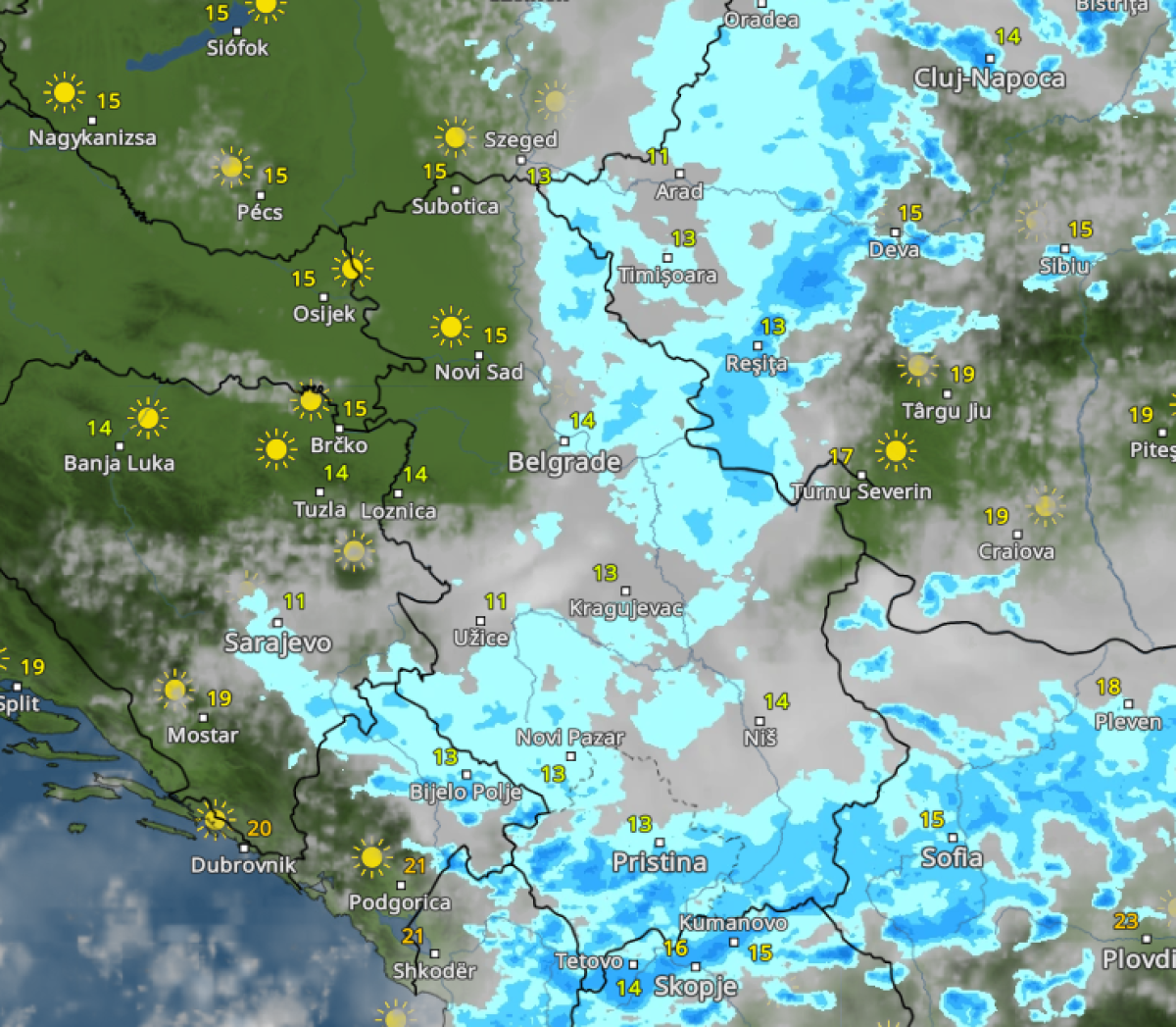 Tokom prepodneva očekuju se obilne padavine praćenje gradom na teritoriji juga, jugozapada i severoistoka naše zemlje.