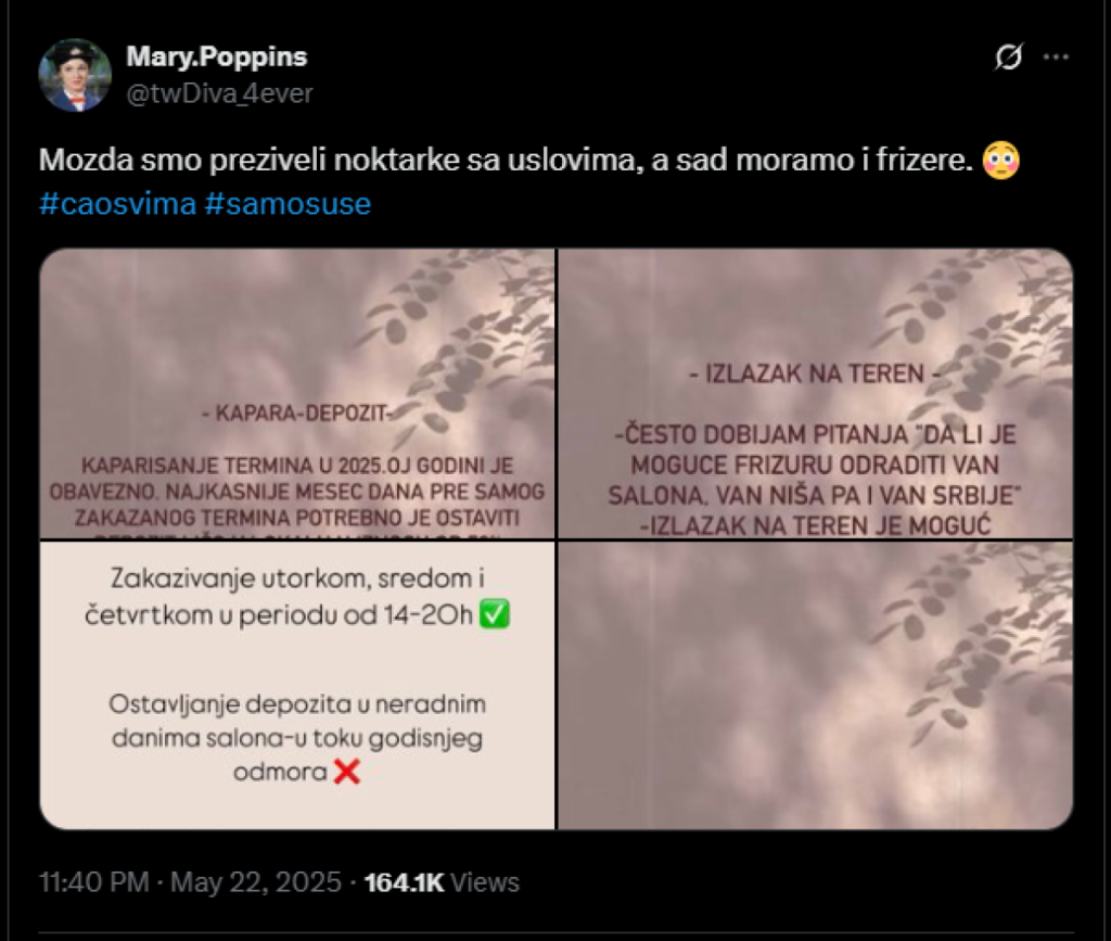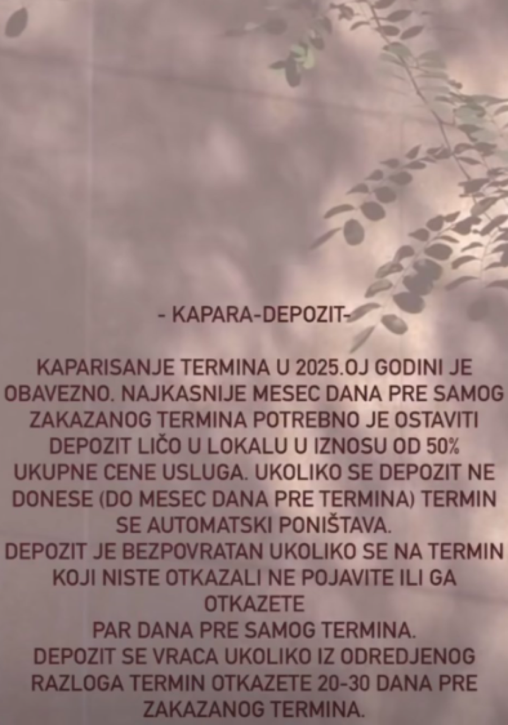 U poslednje vreme, Srbijom se širi pomalo bezobrazan i bahat trend, koje su pokrenule manikirke, a kopirale frizerke, gde traže klijetkinjama da uplate depozit kako bi im rezervisale termin.