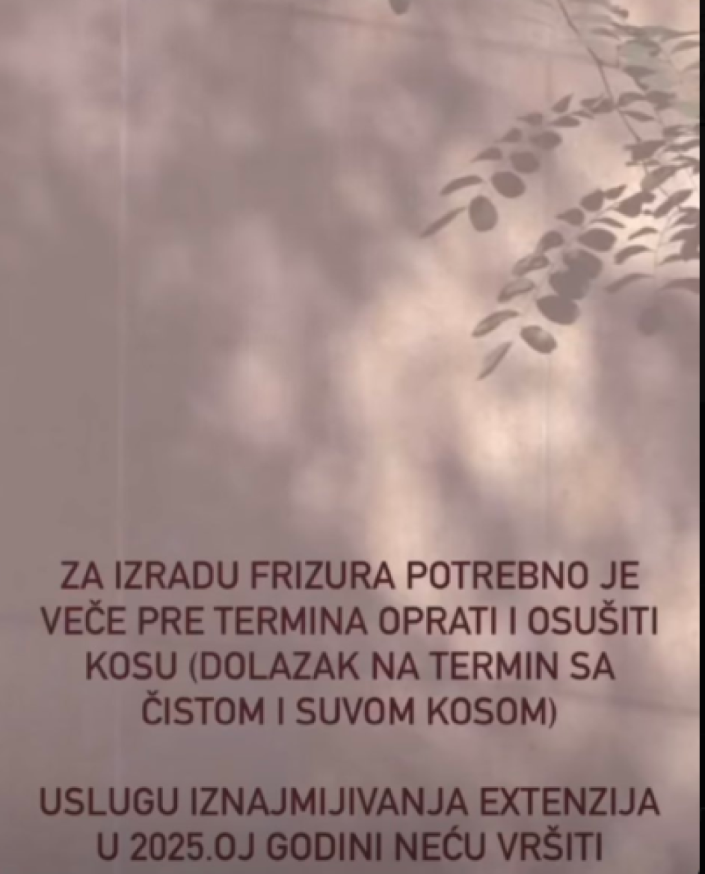 "Znači ja perem kosu, osušim, stavim sve preparate i dođem da mi on veže rep? Verovatno za 100 evra, još treba mesec i jače ranije da zakažem. Bezobrazluk"