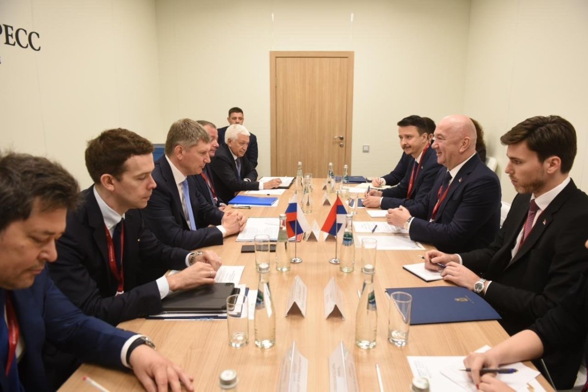 Dr Nenad Popović, ministar u Vladi Republike Srbije zadužen za međunarodnu ekonomsku saradnju, danas je razgovarao sa ministrom ekonomskog razvoja Ruske Federacije Maksimom Rešetnjikovim, na Sanktpeterburškom međunarodnom ekonomskom forumu