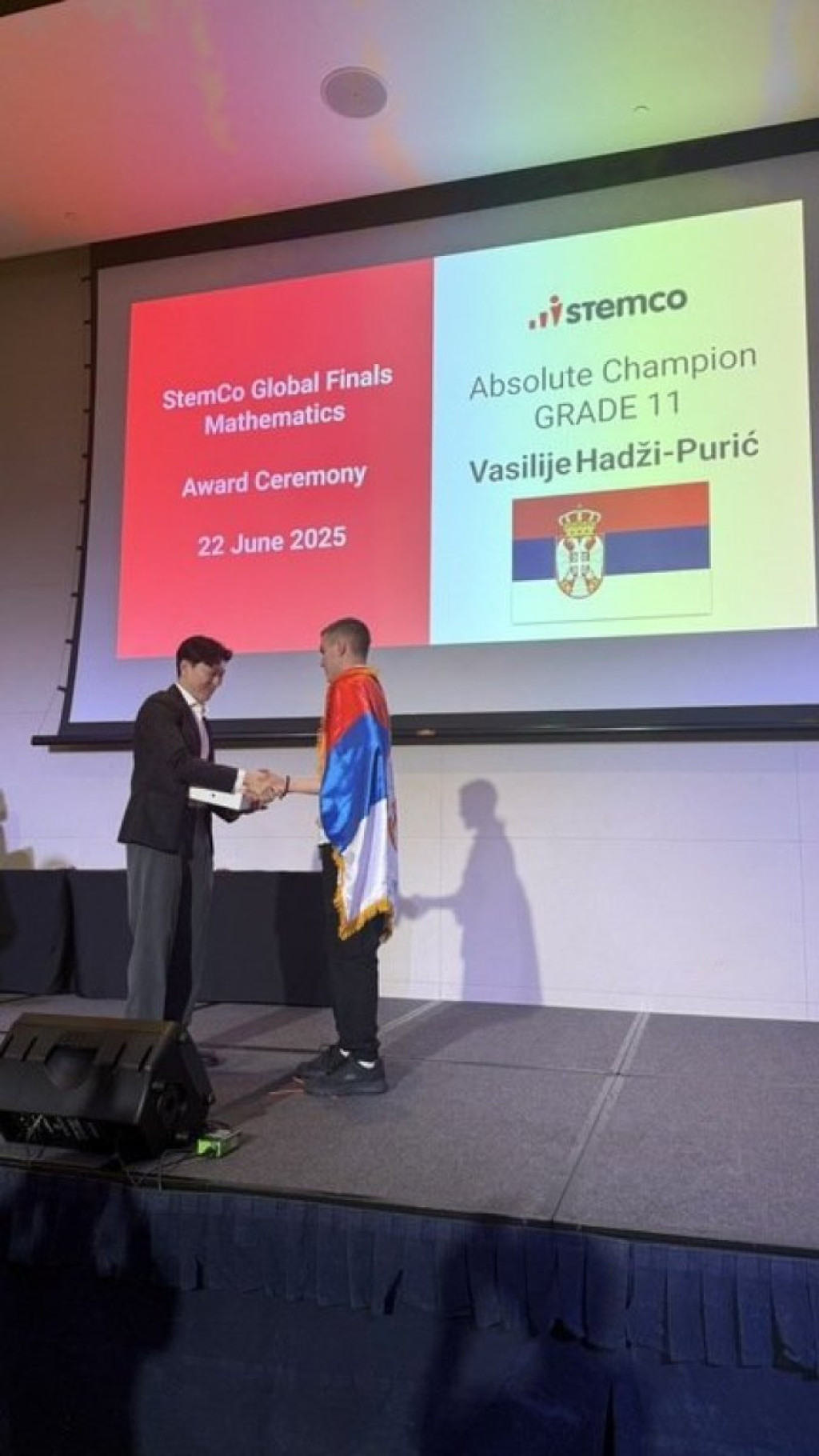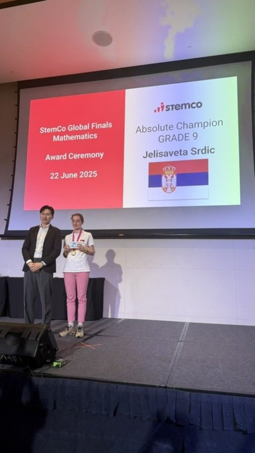 Učenici Matematičke gimnazije Jelisaveta Srdić i Vasilije Hadži-Purić osvojili su zlatne medalje i titule apsolutnog pobednika u svom uzrastu, dok je Dimitrije Jelić osvojio srebrnu medalju.
