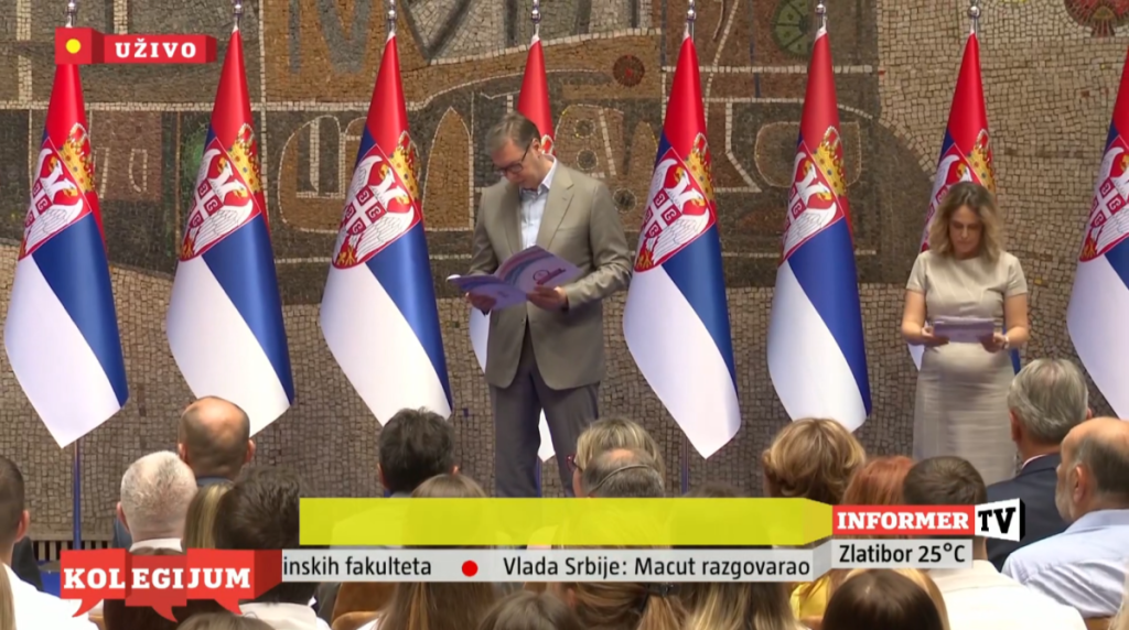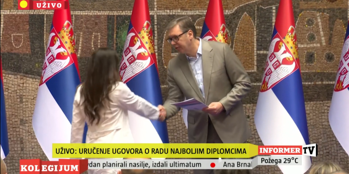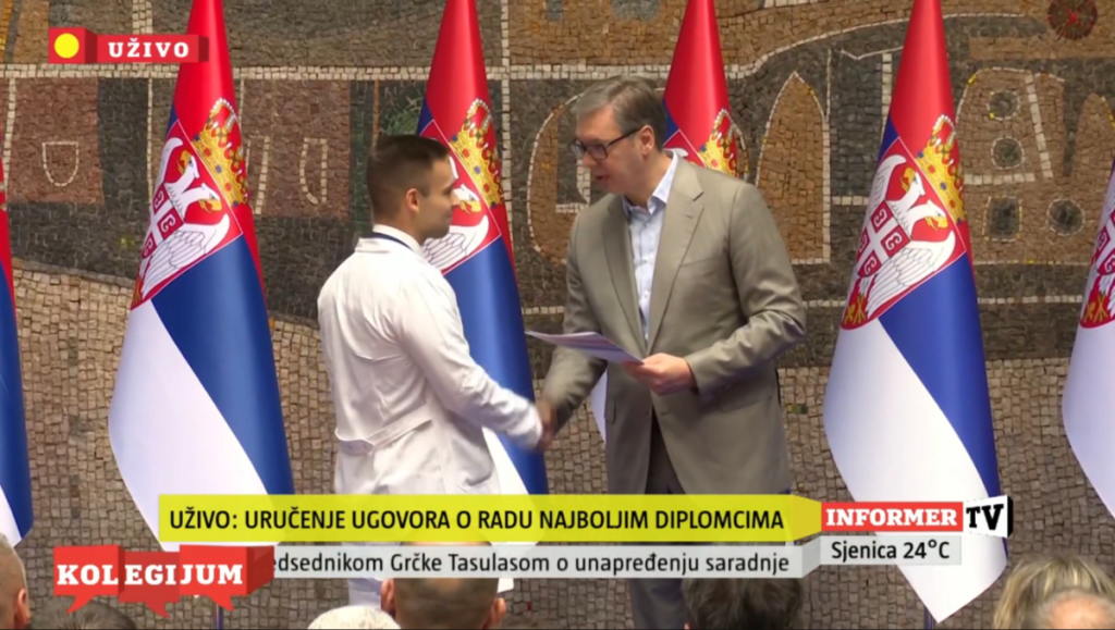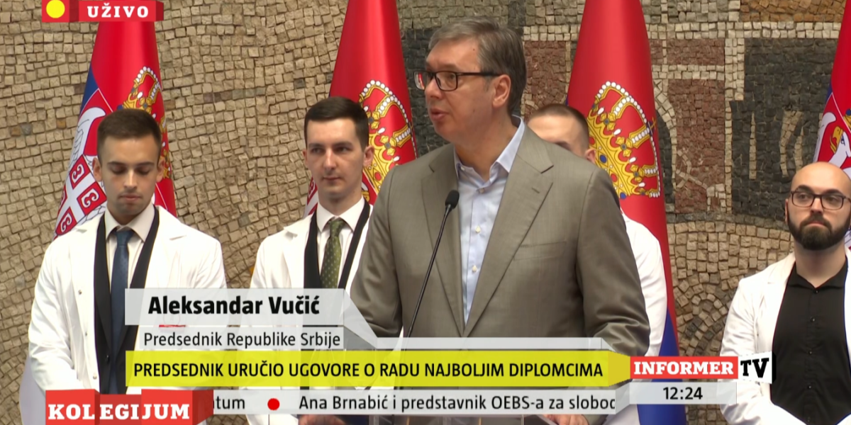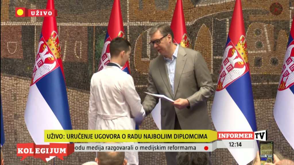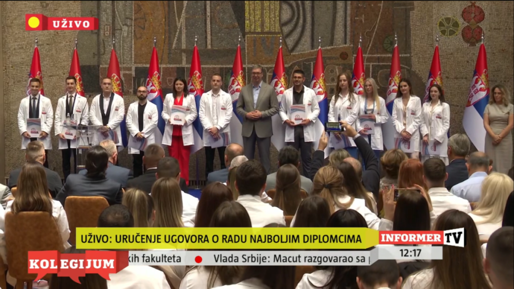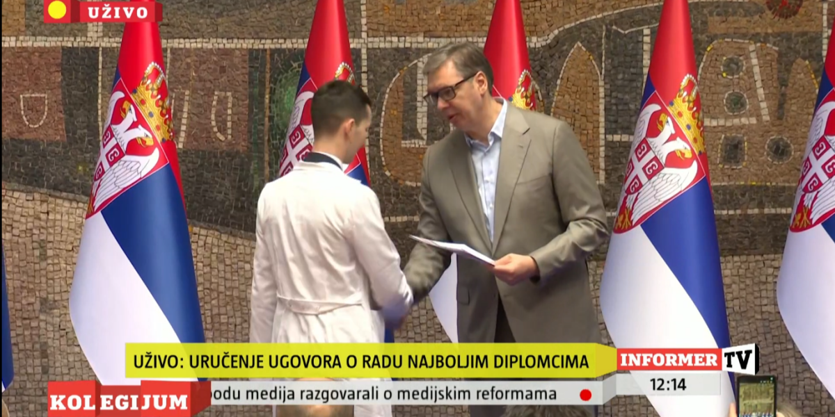 Predsednik Srbije Aleksandar Vučić prisustvovao je ceremoniji uručenja ugovora o radu najboljim diplomcima medicinskih fakulteta i srednjih medicinskih škola u Srbiji.