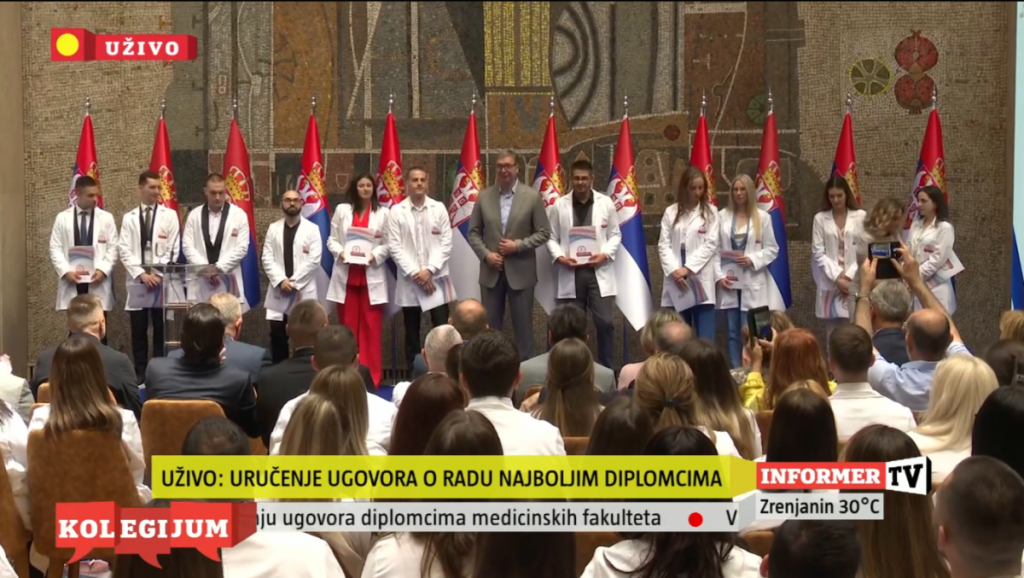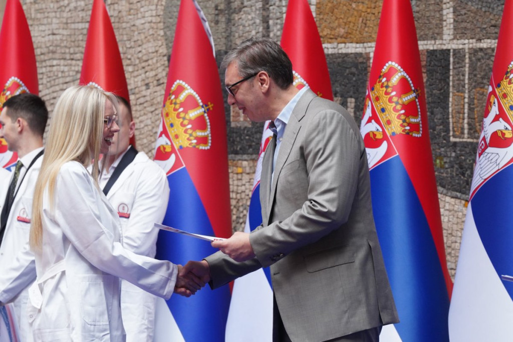 Predsednik Vučić je sve najbolje diplomce medicinskih fakulteta i srednjih škola još jednom podsetio da je Srbija uvek uz njih.