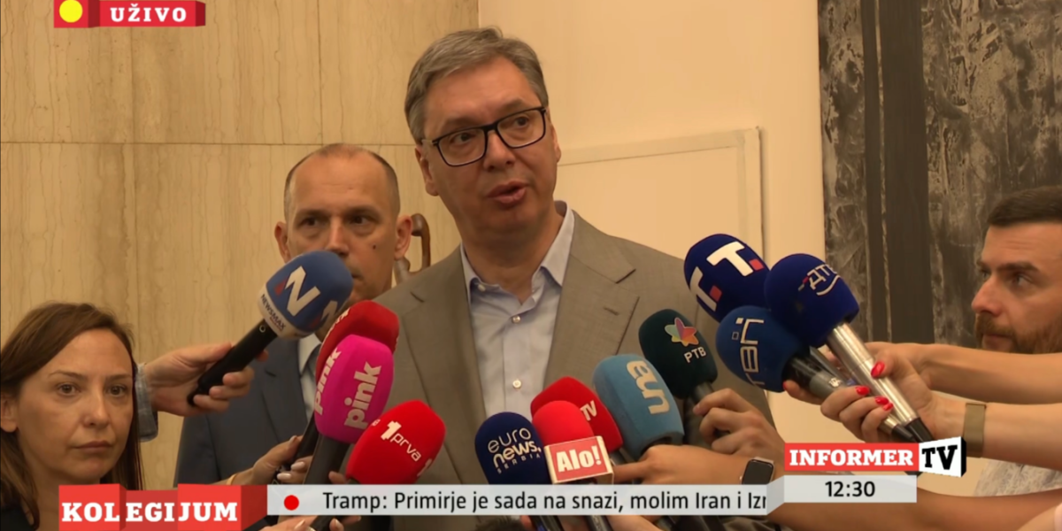 - Pa će oni koji su me do juče napadali što smo izvozili, krenuti da me napadaju što nema plata u namenskoj industriji. Mi mnogo toga i uvozimo iz Izraela, da ne zaboravite to. To je sve što imam da kažem, ne pada mi na pamet da kažem šta je sletelo, a šta uzletelo - rekao je predsednik medijima u Palati Srbija.