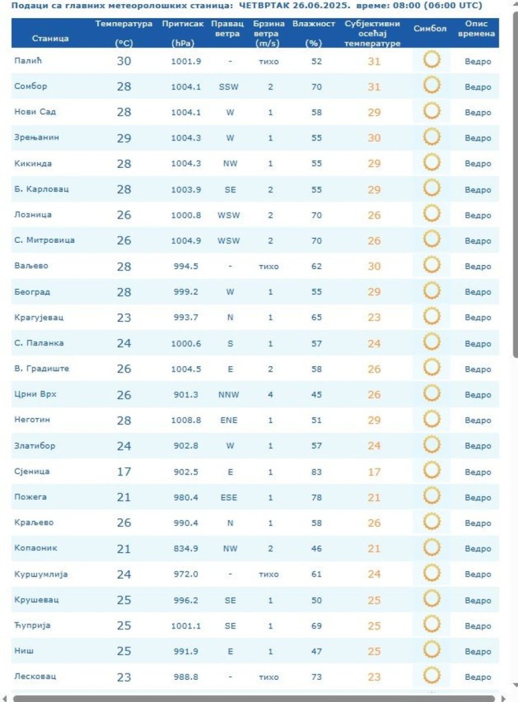 Takođe, toplo je bilo i u Beogradu, Novom Sadu, Negotinu, Zrenjaninu, Valjevu gde se temperatura kretala od 28. do 30. podeoka.