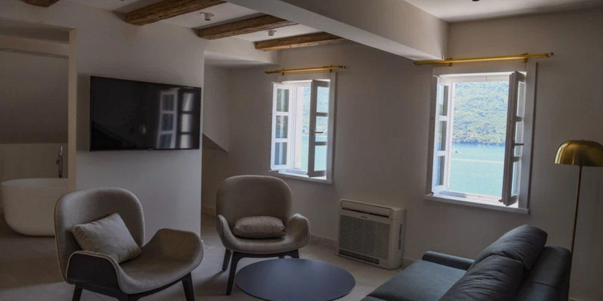 Posetiocima je na raspolaganju 14 unikatnih jedinica utopljenih u duh Perasta, u kojima dominiraju prirodni materijali drvo i kamen i ručno rađen nameštaj, baš kako dolikuje hotelu koji se nalazi pod zaštitom UNESCO.