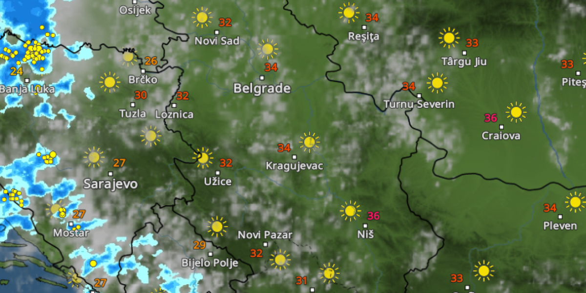 Tokom dana u Srbiji će biti pretežno sunčano i veoma toplo, dok je posle podne uz promenljivu oblačnost moguća retka pojava kratkotrajne kiše u brdsko-planinskim predelima.