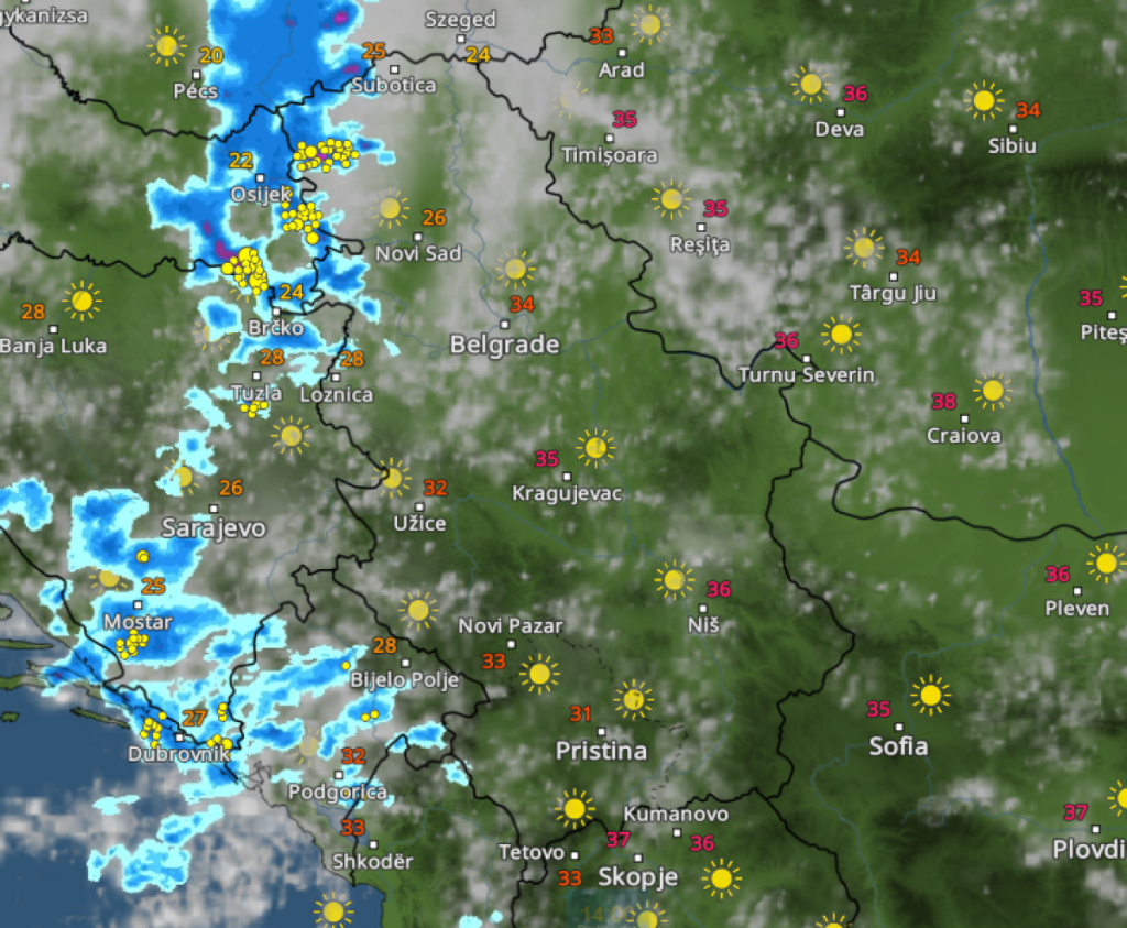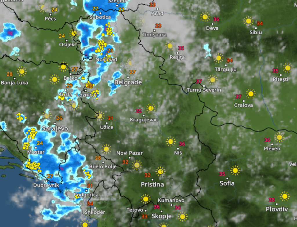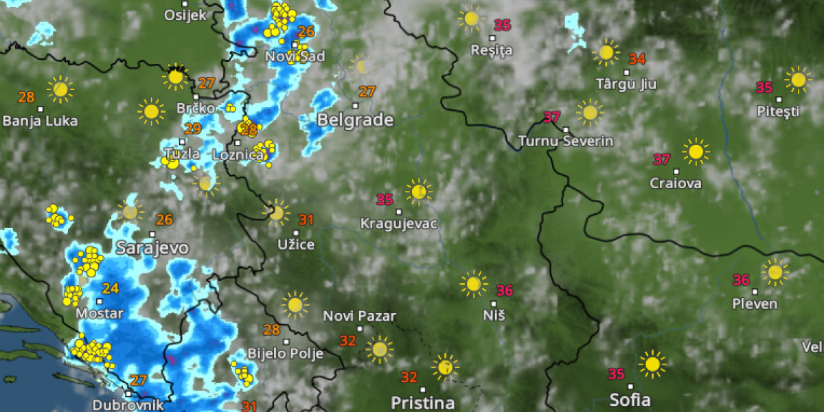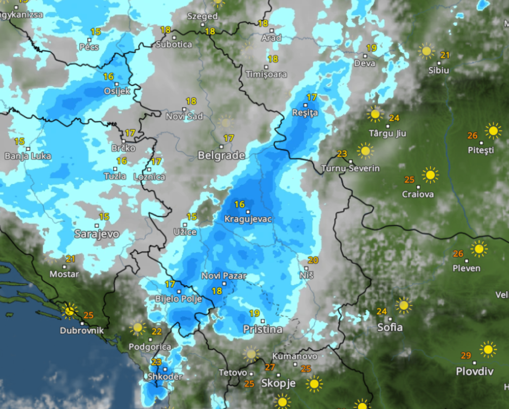 Pljuskovi i grmljavine zahvatiće malu površinu i postepeno napredovati ka istoku preko centralnog pojasa Srbije, najavljuje meteorolog Nedeljko Todorović.