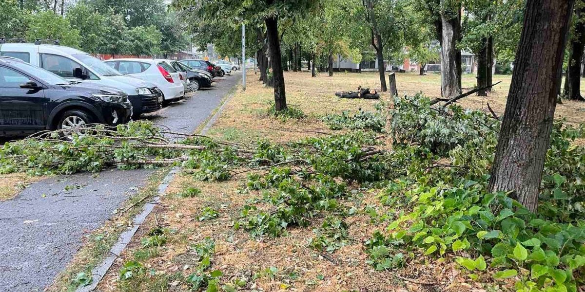 U Narodnoj bašti u Pančevu, jako nevreme je iščupalo drveće, a oborena stabla preprečila su pešačku stazu.