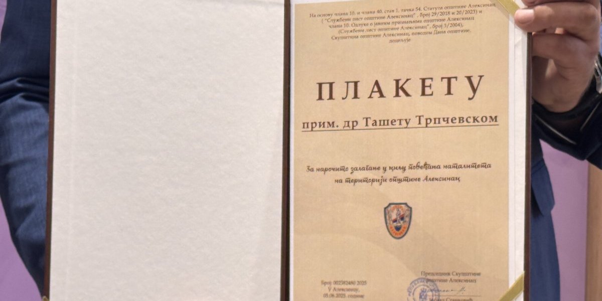 I upravo zbog toga Mijodrag je SO Aleksinac uputio predlog da dr Trpčevski bude nagrađen najvišim priznanjem ove lokalne samouprave, koji je lokalni parlament podržao.