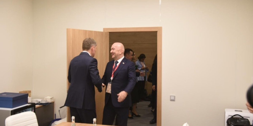 Dr Nenad Popović, ministar u Vladi Republike Srbije zadužen za međunarodnu ekonomsku saradnju, danas je razgovarao sa ministrom ekonomskog razvoja Ruske Federacije Maksimom Rešetnjikovim, na Sanktpeterburškom međunarodnom ekonomskom forumu