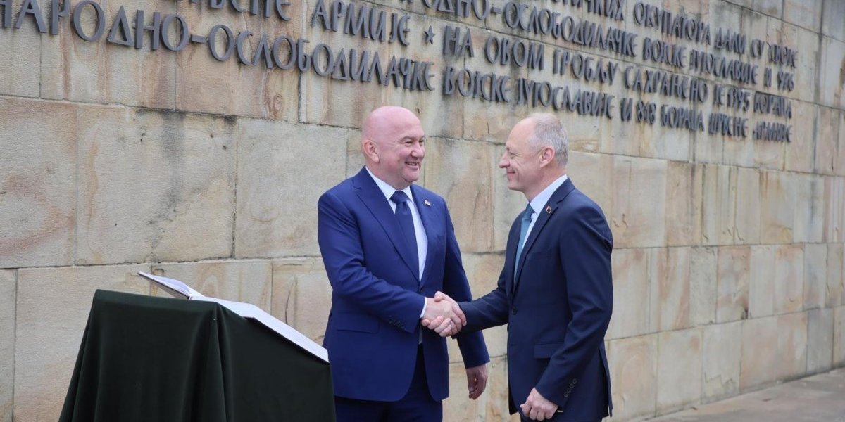 Dr Nenad Popović, ministar u Vladi Republike Srbije zadužen za međunarodnu ekonomsku saradnju i oblast društvenog položaja crkve u zemlji i inostranstvu i Artur Karpovič, ministar antimonopolskog regulisanja i trgovine Republike Belorusije, odali su počast herojima postradalim u borbi za oslobođenje Beograda u Drugom svetskom ratu.