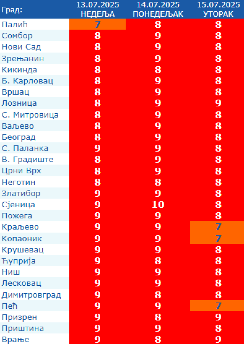 U većem delu Srbije vrednosti UV indeksa označene su crvenom bojom, kao vrlo visoke, pa lekari savetuju da se suncu ne izlažemo u najtoplijem delu dana bez preke potrebe. Ukoliko to ne možemo izbeći, preporučeno je da zaštitimo glavu i oči pomoću šešira, naočara za sunce i sličnih pomagala.