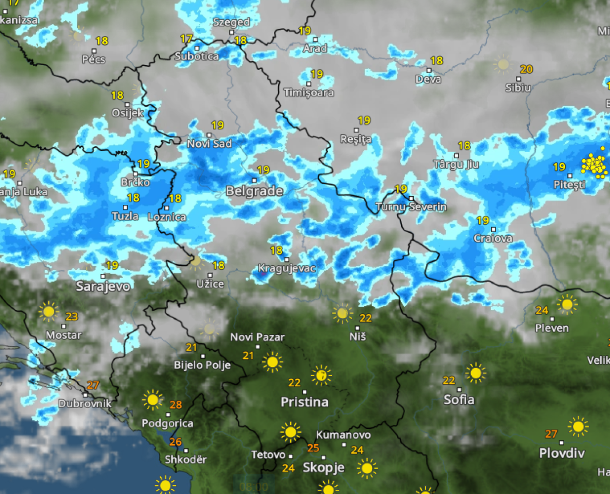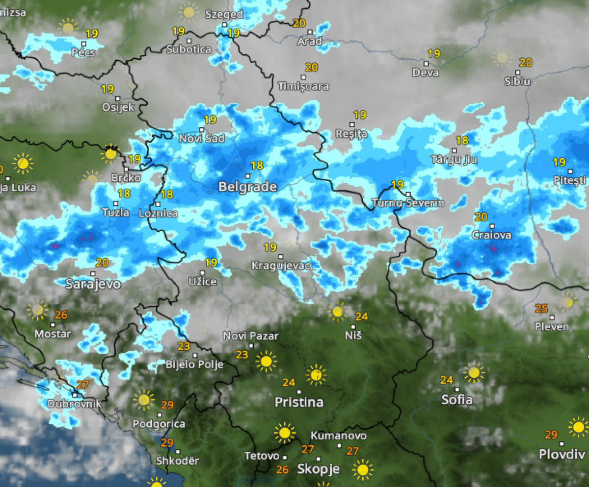 Tokom jutra i prepodneva očekuje se pretežno oblačno vreme, mestimično sa kišom, dok se u popodnevnim satima očekuje postepeno razvedravanje na severu Srbije, dok će ostali delovi zemlje biti na udaru pljuskova sa grmljavinom, najavio je Republički hidrometeorološki zavod.
