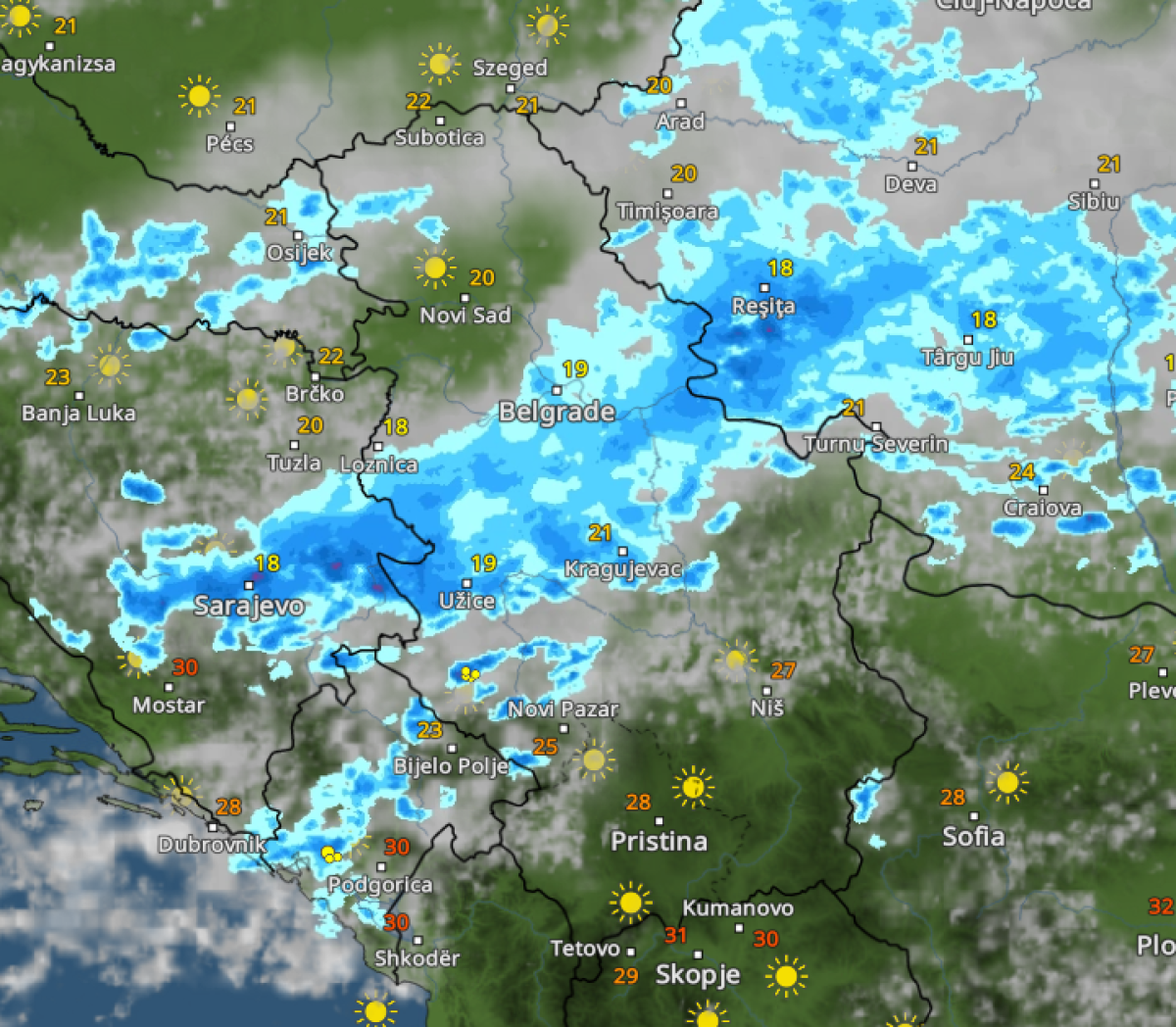Prema izveštajima Republičkog hidrometeorološkog zavoda Srbije, vreme će danas biti promenljivo, sa dužim sunčanim periodima, ali i pojavom kratkotrajne kiše ili pljuskova sa grmljavinom.