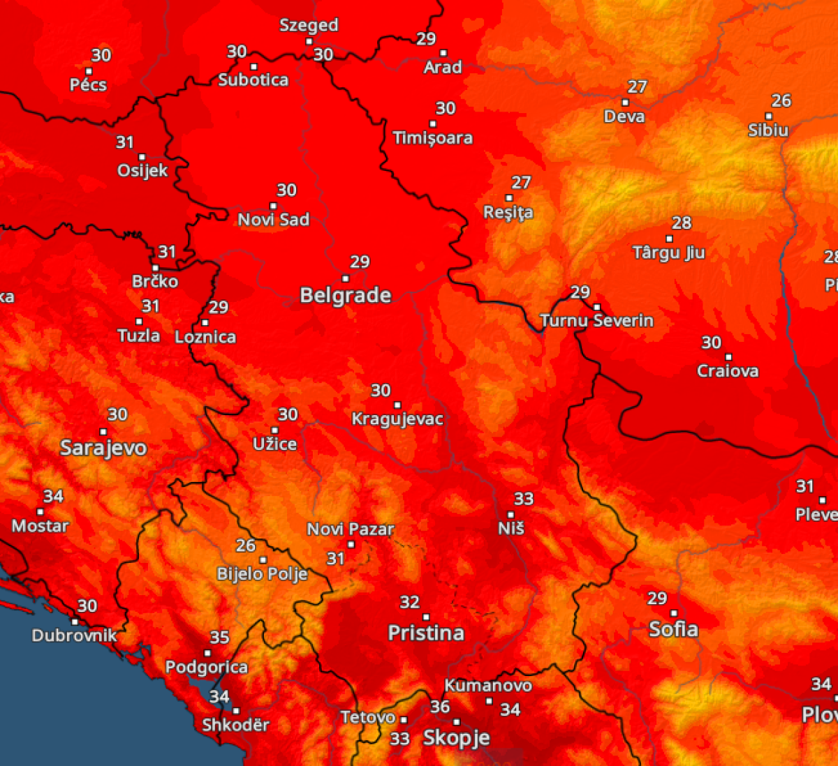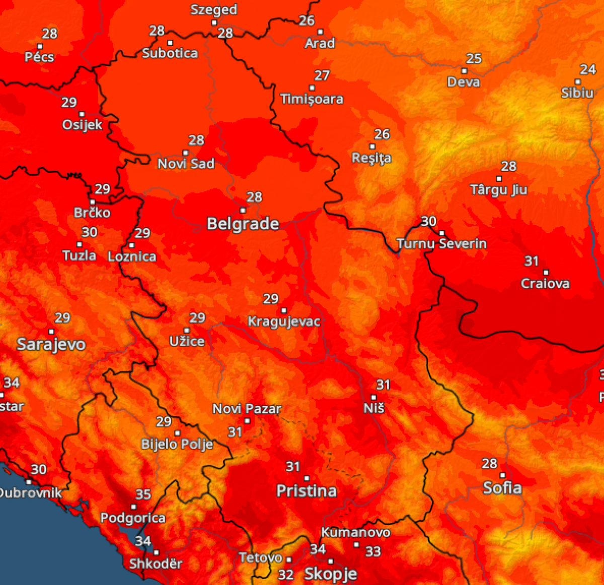 Goreće Srbija: Pogledajte kakve temperature nas očekuju narednih dana (MAPA)