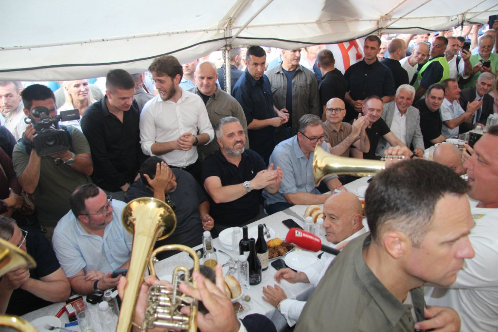 - Mi ćemo danas da vam pokažemo lepšu stranu Srbije! Iza mene je vo na ražnju, cisterne piva, pravo narodno veselje. Povod našeg okupljanja je otvaranje auto-puta do Požege. Rekao sam da kad se otvori auto-put pravim narodno veselje i evo kao što sam i obećao! Javili su mi da će biti dve do tri hiljade ljudi, dolaze sa svih strana. Svi koji gledate ste dobrodošli - rekao je Vučićević.