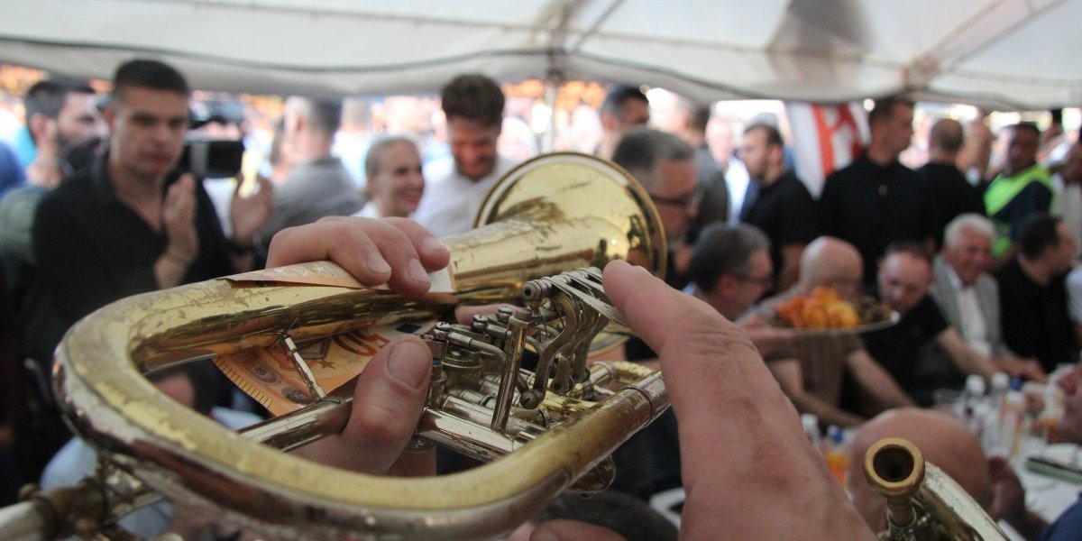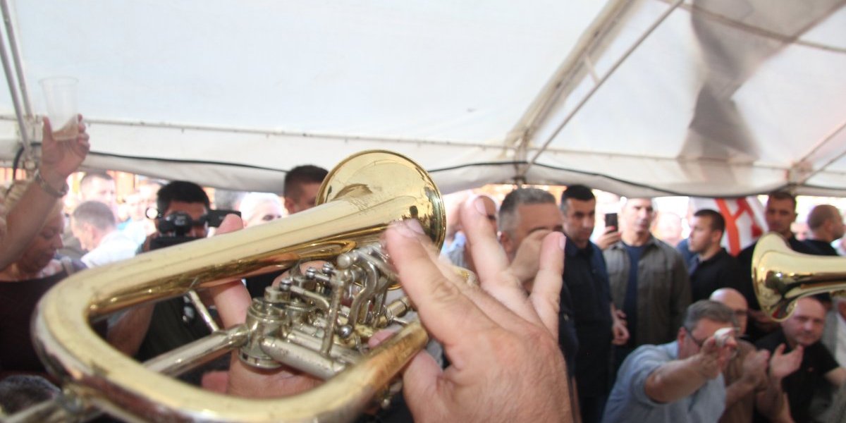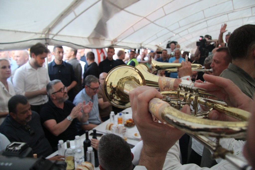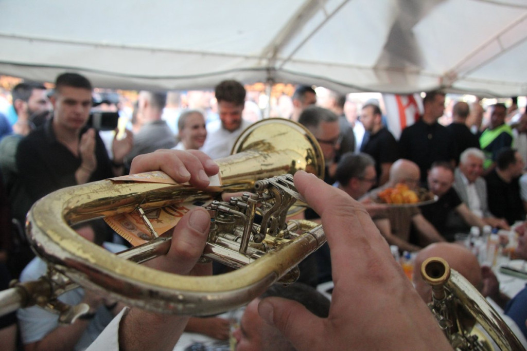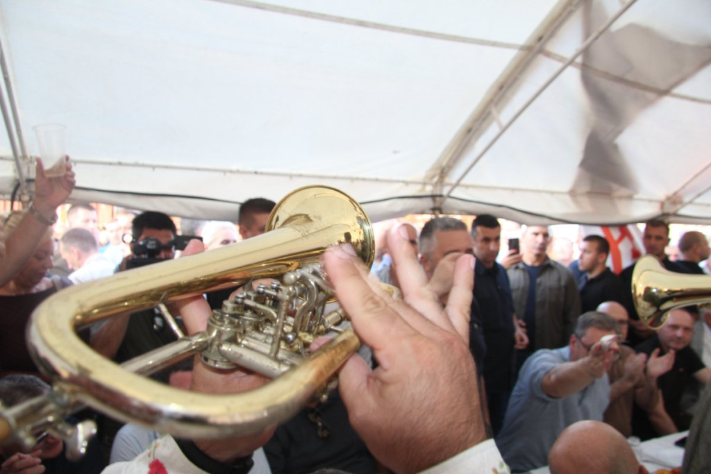 Trubači su iznenadili sve pristutne, te zapevali srpske patriotske pesme: "Morem plovi jedna mala barka", "Oj vojvodo Sinđeliću","Srpska se truba s Kosova čuje", "Marširala kralja Petra garda", "Vidovdan" i mnoge druge.