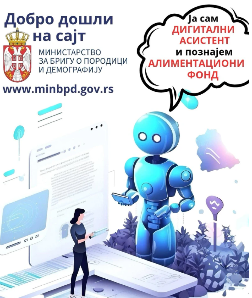 Nakon uspostavljanja jedinstvenog Kontakt centra za pitanja građana u vezi sa korišćenjem sredstava iz Alimentacionog fonda, Ministarstvo za brigu o porodici i demografiju, u saradnji sa Kancelarijom za informacione tehnologije i elektronsku upravu, uz podršku Programa Ujedinjenih nacija za razvoj (UNDP), na zvaničnom sajtu ministarstva na adresi www.minbpd.gov.rs uspostavilo je digitalnog asistenta, zasnovanog na veštačkoj inteligenciji, koji pruža korisnicima odgovore na pitanja u vezi sa ostvarivanjem prava na privremeno izdržavanje iz fonda.