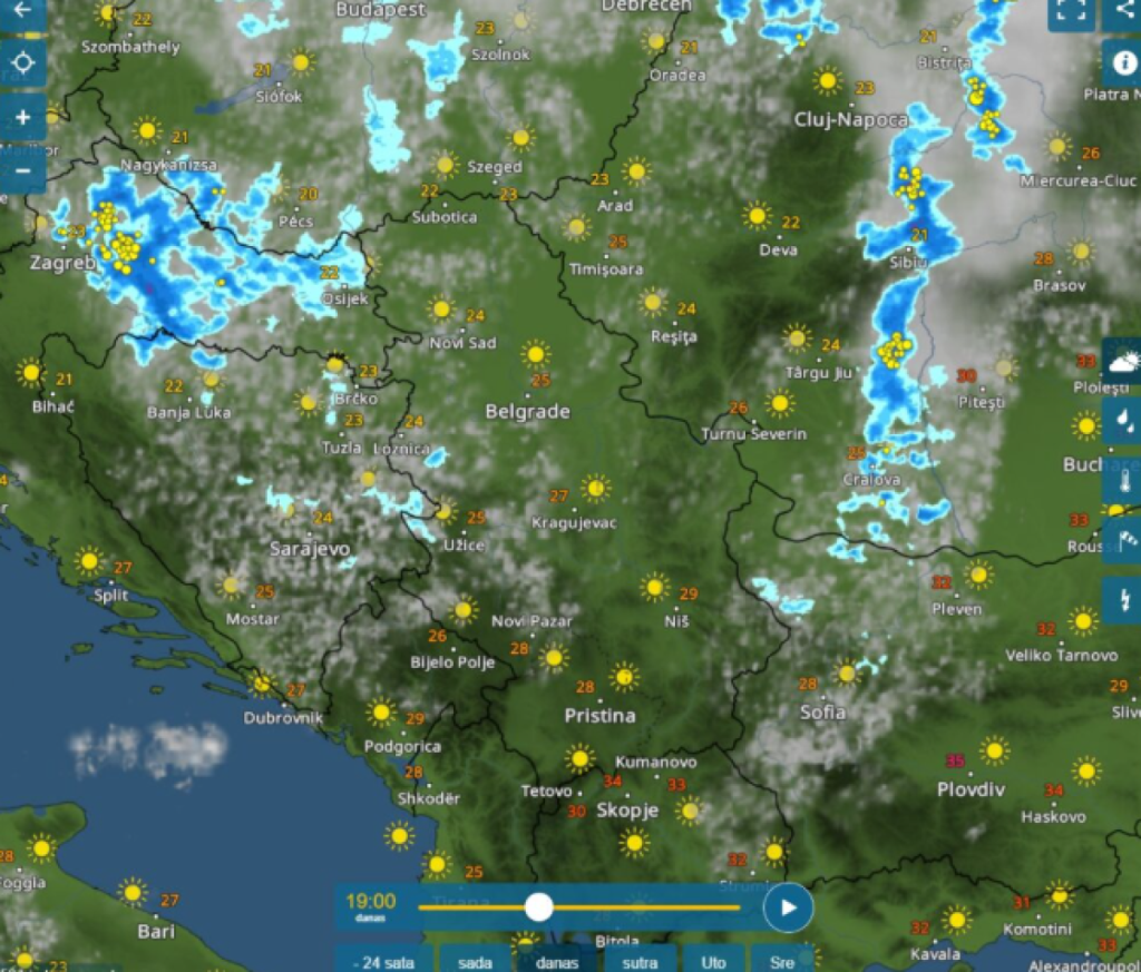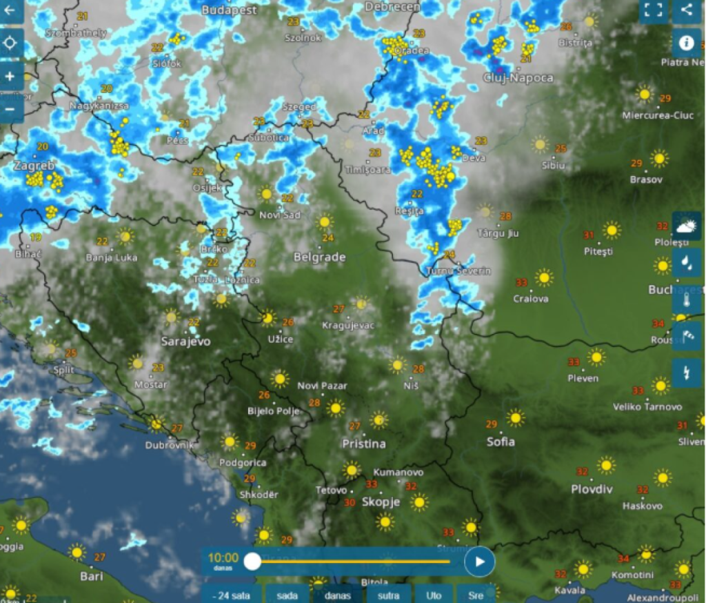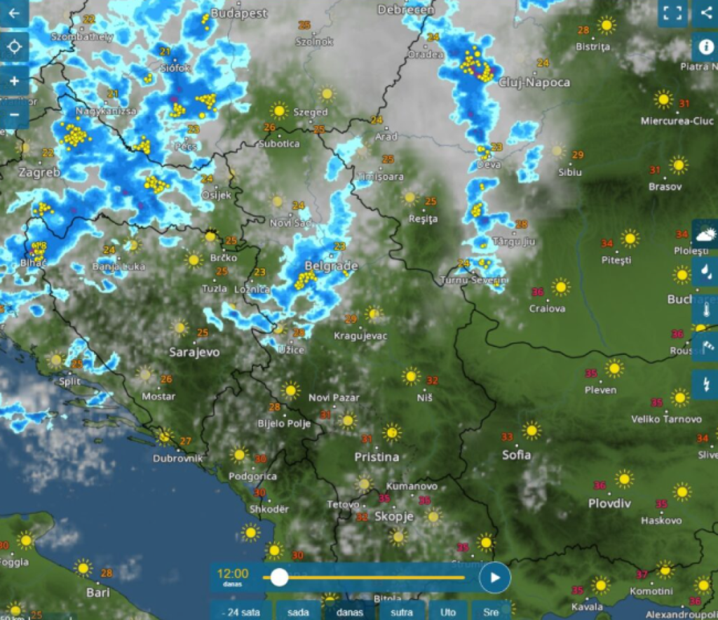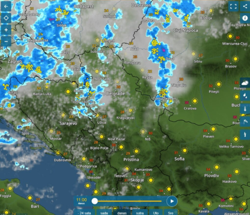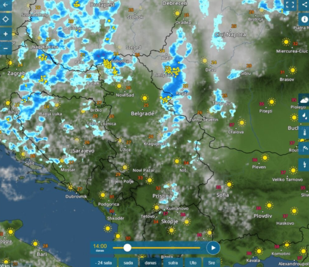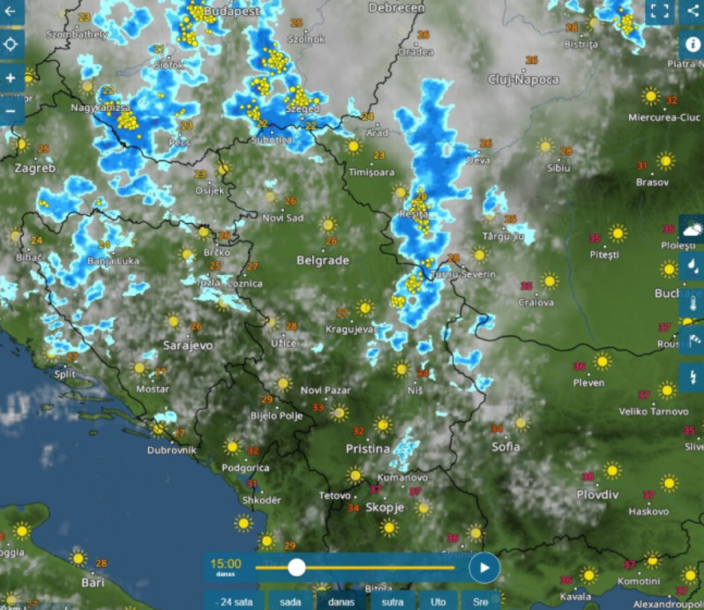 Srbija se nalazi na udaru jake oluje, a sudeći prema radarskim snimcima, kretanja oblaka ukazuju da će danas u toku dana najviše kiše pasti u 13 časova u centralnoj i istočnoj Srbiji, dok će se sve do 17 časova oblaci povlačiti ka severu, a od 19 časova padavina više neće biti.