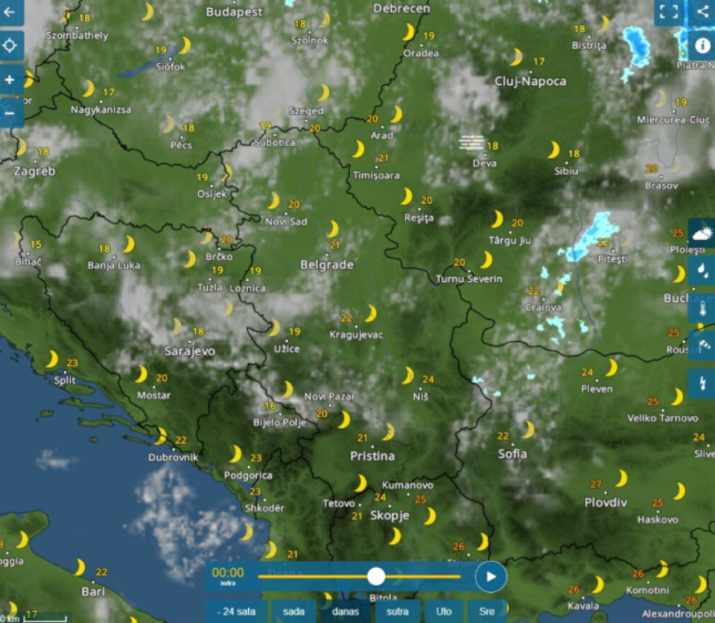 Najviša dnevna temperatura od 25 na severozapadu do 33 stepeni na jugu i jugoistoku zemlje, navodi u saopštenju RHMZ.