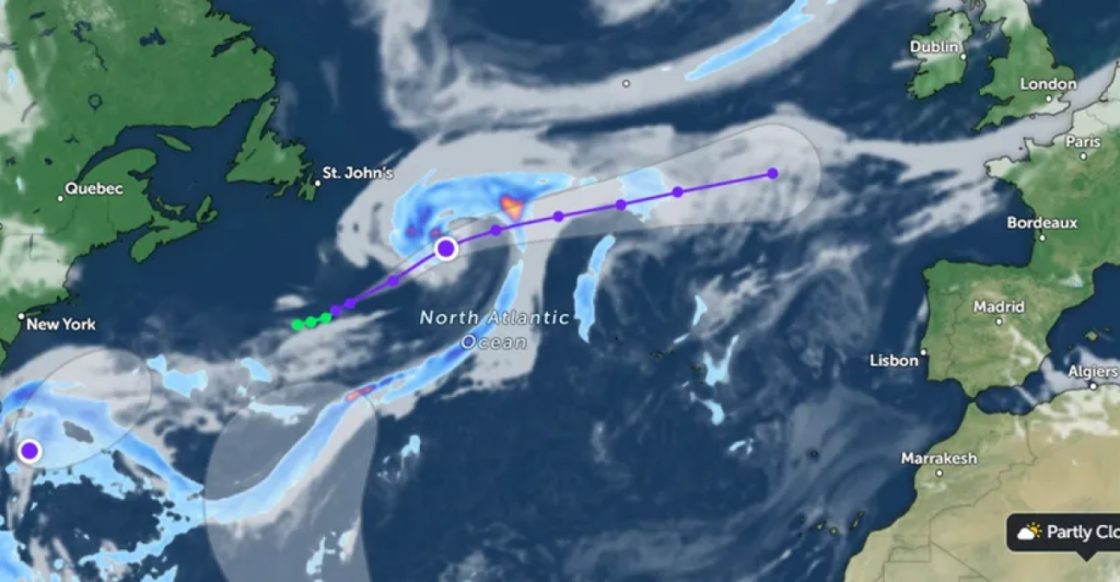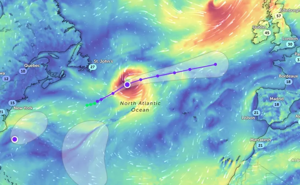Trenutno nad severnim delom Atlantika nalazi se veoma snažna tropska oluja, koja će se tokom vikenda premeštati na bezbednoj udaljenosti severnije od Azorskih ostrva i daleko je od svakog kopna, piše Telegraf.