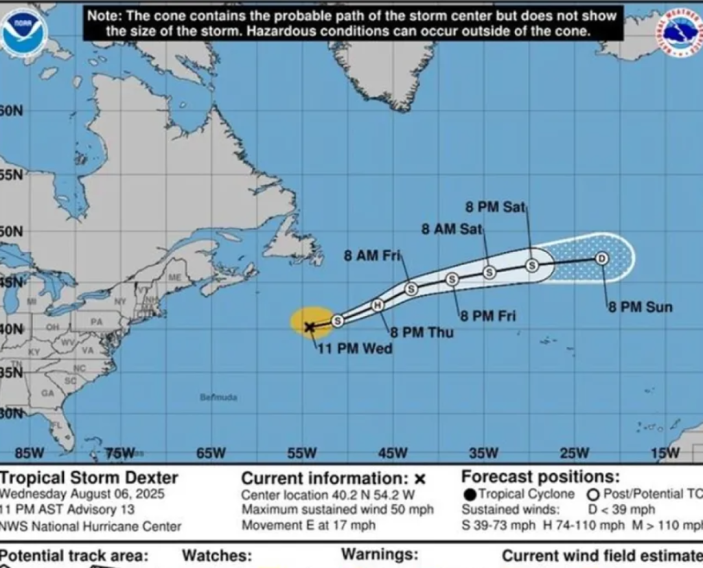 Tropska oluja koja je na snazi trenutno, nastala je posred evernog dela Severnog Atlantika i zaputila se na zapad, put otvorenog Atlantika.