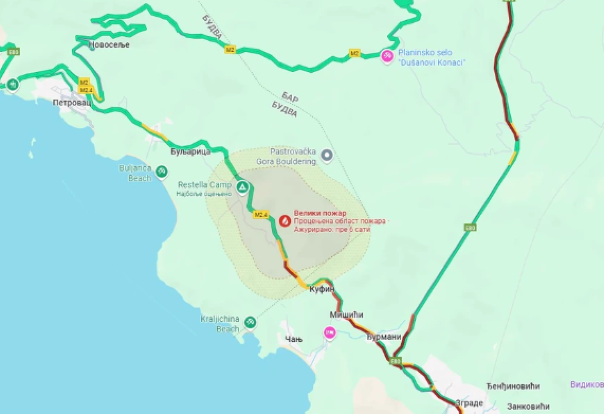Ipak, bojazan uoči predstojeće noći raste iz jednog razloga. Naime, u Podgorici je već počeo da pojačava vetar, a ukoliko se to nastavi tokom noći - nema sumnje kako će vatrogascima otežavati posao. Pritom, i na primorju je u najavi bura. Temperature su i dalje tropske - u ovom momentu, zvanično, u Podgorici je čak 37 stepeni.