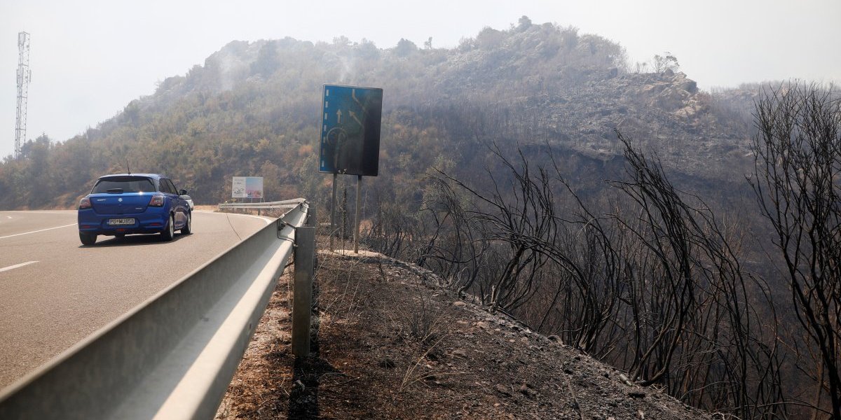 Iznad Čanja u Crnoj Gori jutros se rasplamsao ogroman požar, a kako se sumnja, vatrena stihija proširila se od zapaljenog automobila na magistrali.