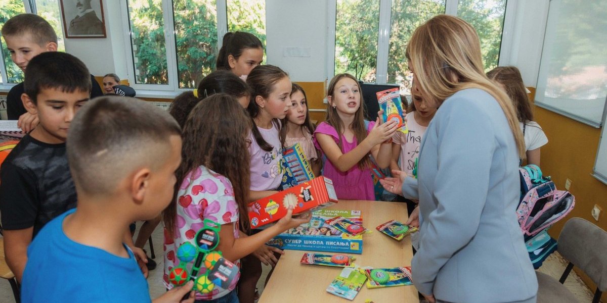 Nakon toga ministar Đurđević Stamenkovski je u OŠ „Rastko Nemanjić“, u Novom Pazaru, koju pohađa 40-oro dece uzrasta od prvog do osmog razreda, uručila školske rančeve i razgovarala sa rukovodstvom o načinima na koje Ministarstvo može da pomogne, kako bi se olakšao put do škole ovim učenicima.
