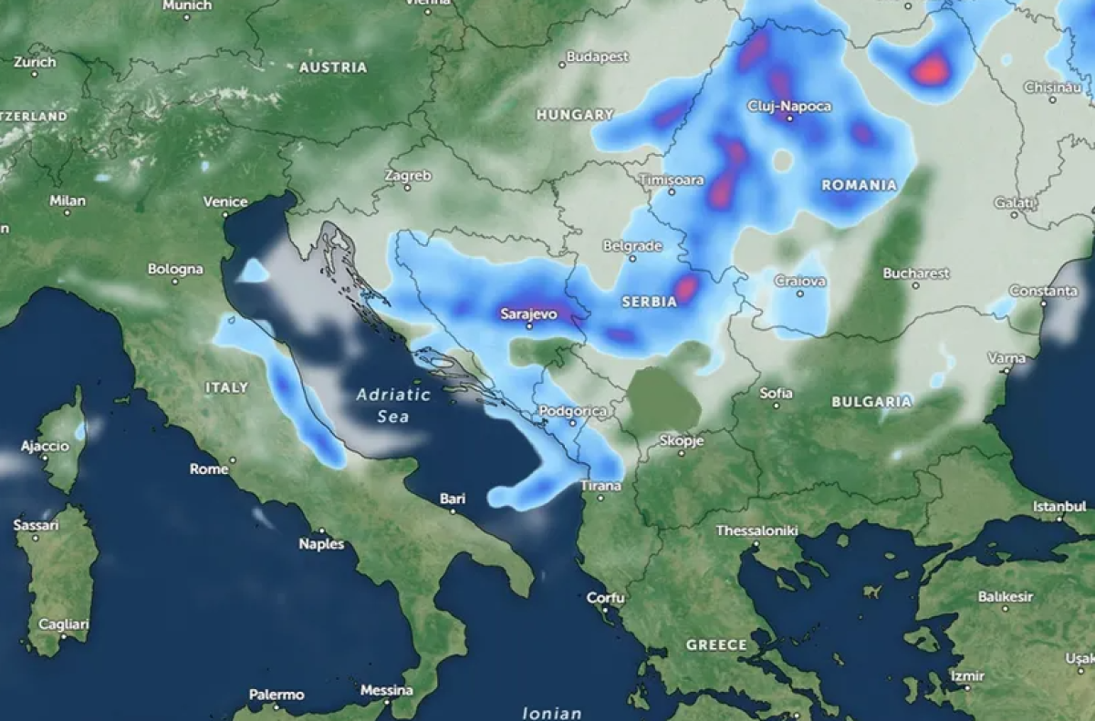 U ovim predelima očekuju se i grmljavinske oluje sa gradom, kao posledica predfrontalnih nestabilnosti, a glavnina olunog sistema uz hladni front očekuje se u oblasti Jadrana, u BiH i u Hrvatskoj.