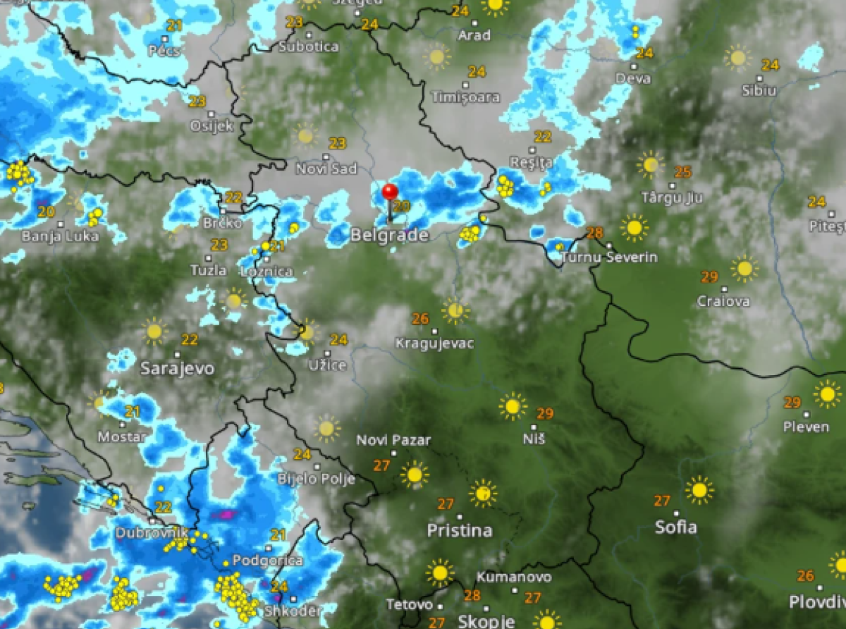 - U toku noći i ponedelјak ujutro, 24. na 25. avgust, kiša uglavnom u delovima zapadne i centralne Srbije, ali i južne Vojvodine. Maksimalne temperature od 23 do 26 stepeni, na krajnjem jugu i do 29 - dodaju iz RHMZ.